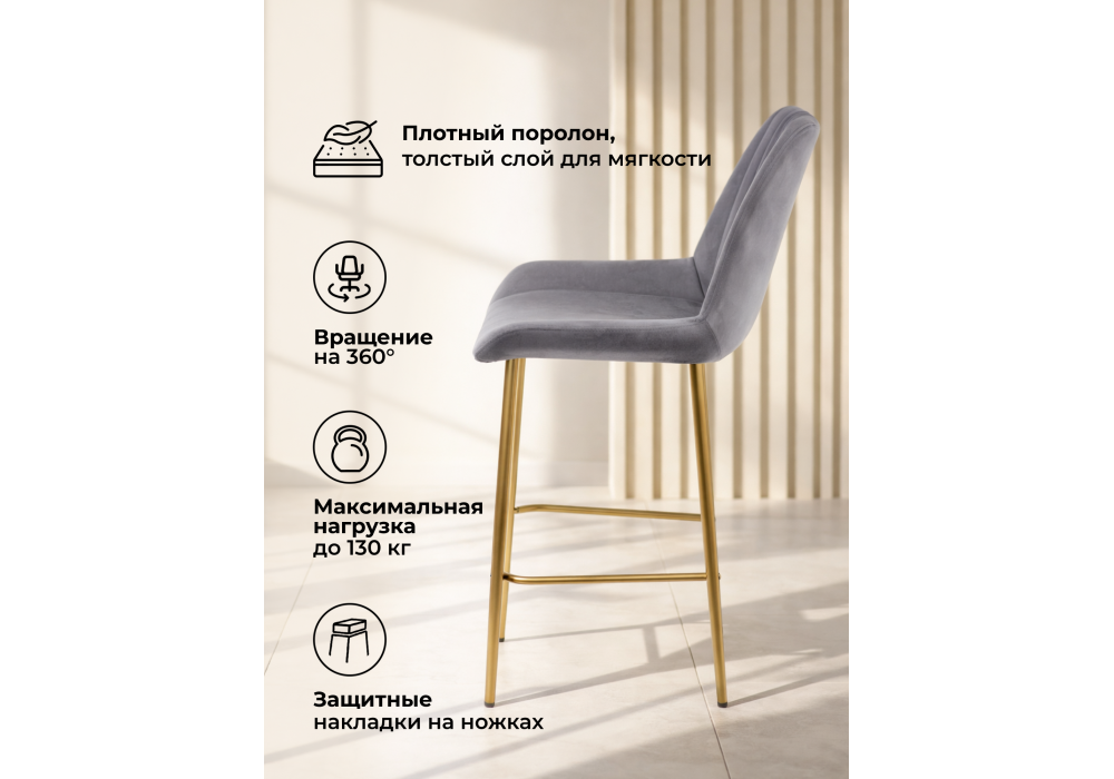 Барный стул поворотный Woodville Седа 360 темно-серый (zd 995) / золотой np 632595 в Кирове