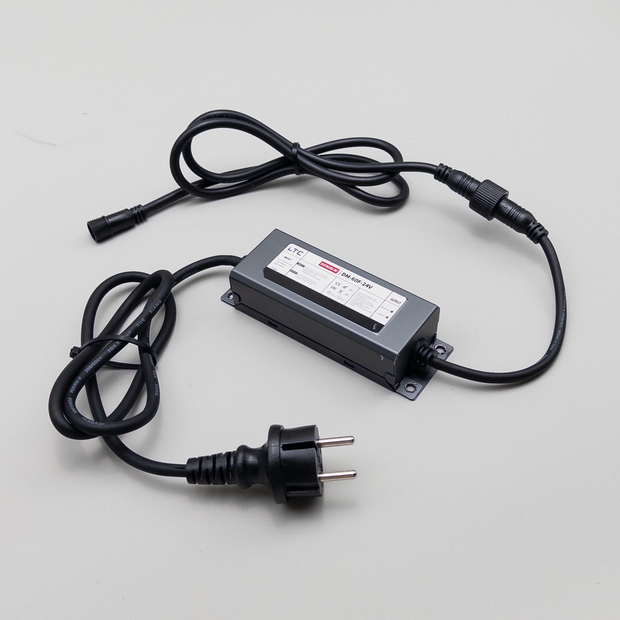 Блок Питания Электронный 60W для Нитей 24В, до 1000 LED, Провод Черный Каучук, IP65 LTC DM-60F-24V в Кирове