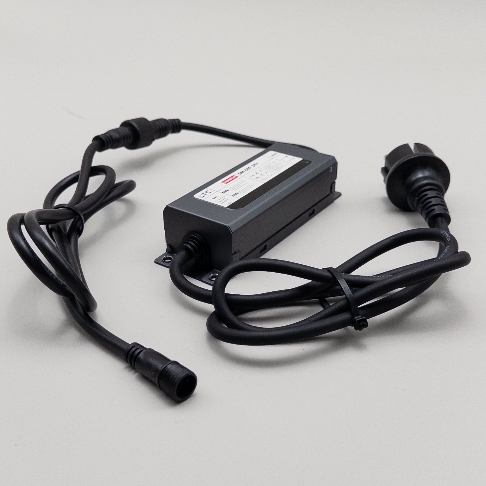 Купить "Блок Питания Электронный 60W для Нитей 24В, до 1000 LED, Провод Черный Каучук, IP65 LTC DM-60F-24V"