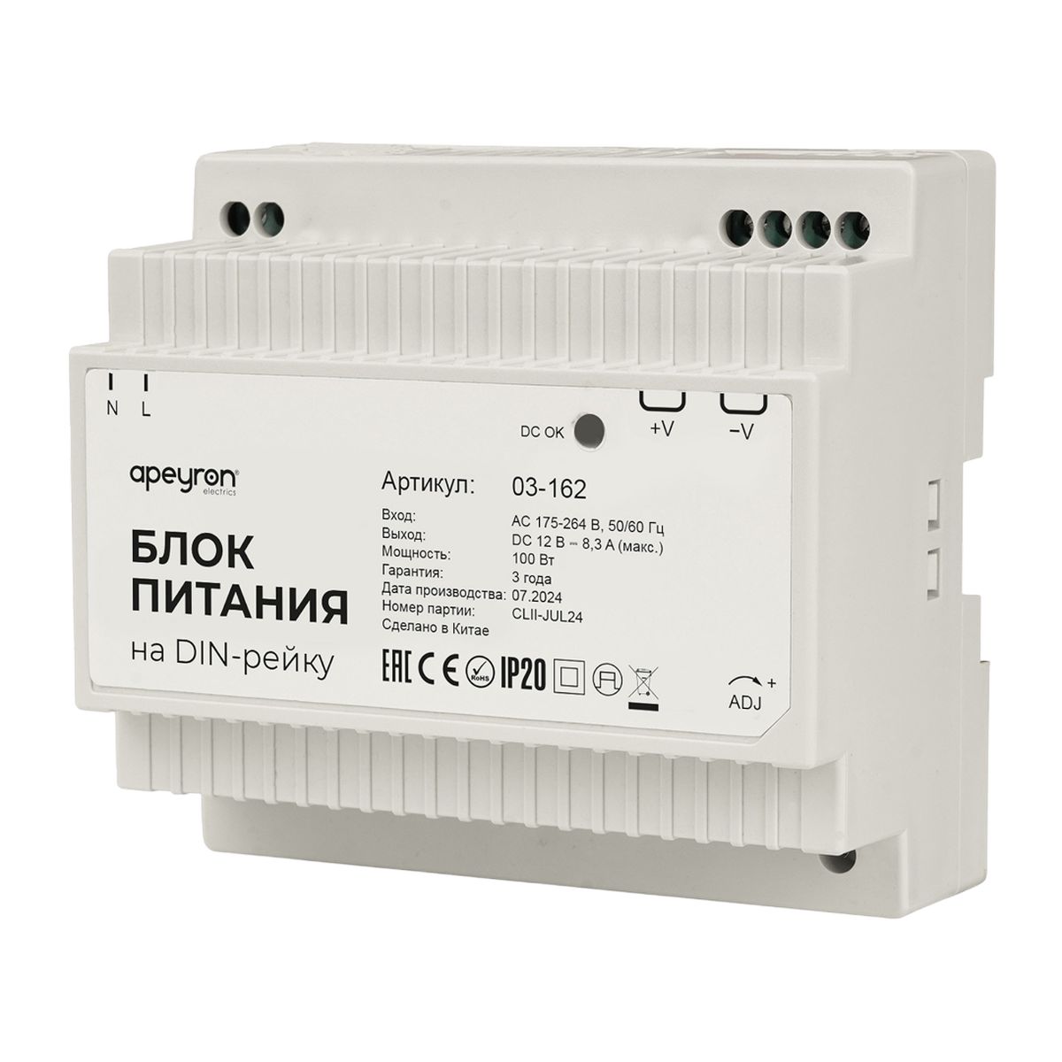 Купить "Блок питания на DIN рейку Apeyron 03-162"