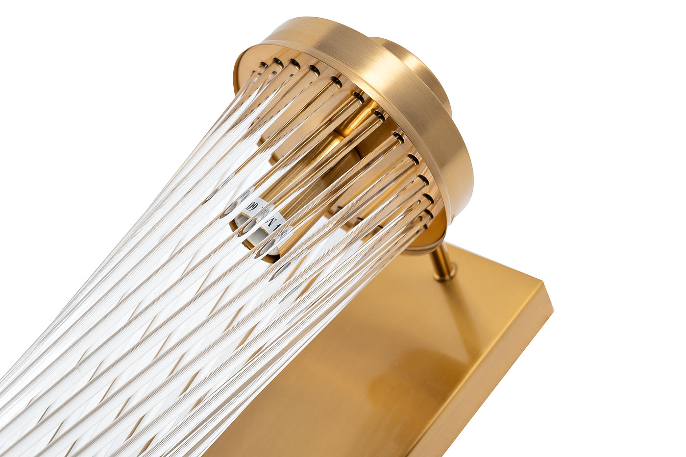 Эффектное бра в стиле ар-деко выполнено из латуни и прозрачного стекла. Стеклянные палочки, закрепленные с двух сторон по кругу под особым углом, создают интересный гиперболический эффект, который широко применялся в авангардных инженерных конструкциях 20-30-х годов прошлого века. Каждая стеклянная деталь по отдельности совершенно прямая, однако корпус имеет слегка вогнутую форму. Бра создаст изысканное местное освещение в гостиной или спальной комнате.