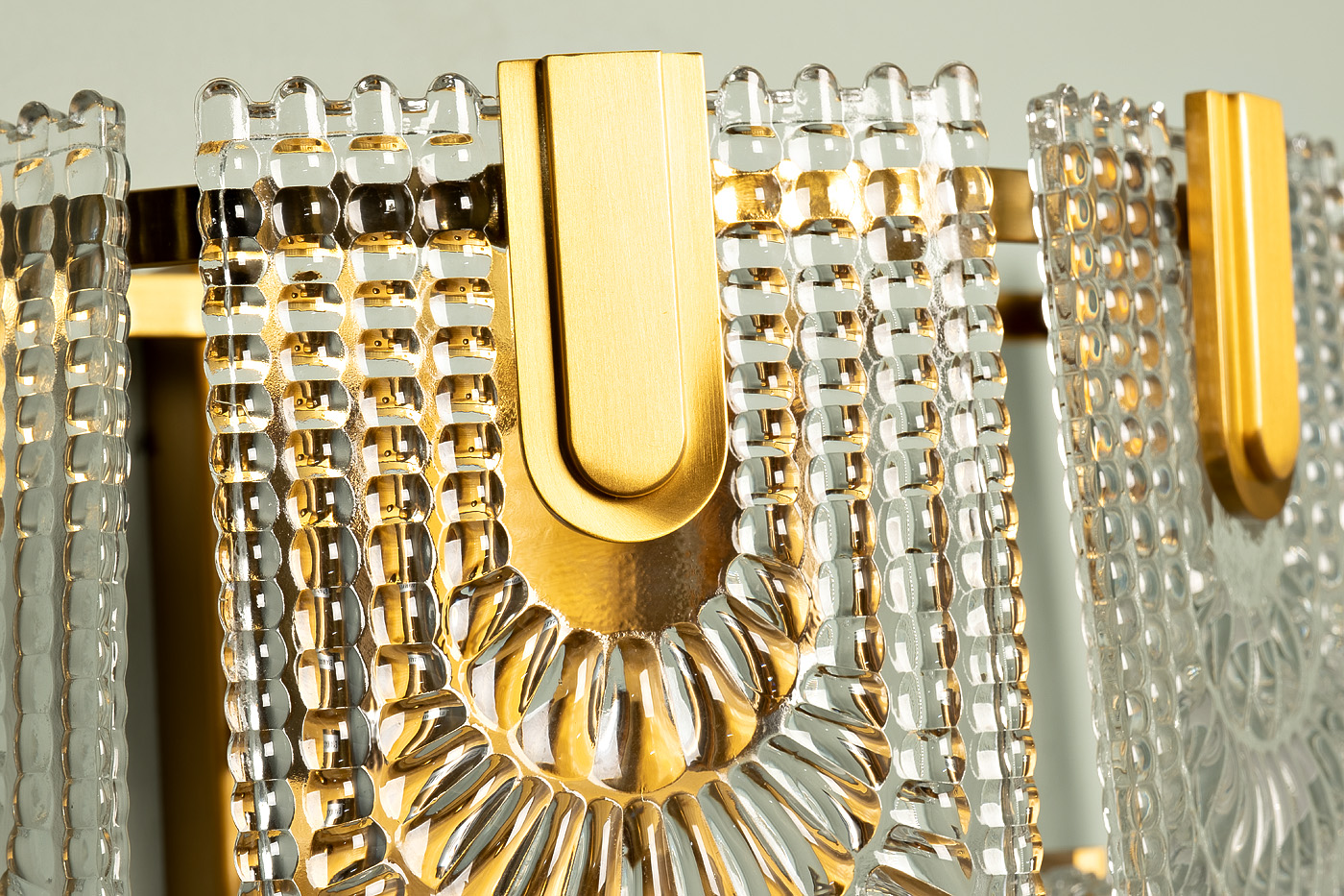 Дизайнерский светильник бра в стиле ар-деко сочетает в себе легкость прозрачного стекла и изысканность позолоченного металла. Оригинальные кружевные подвесы добавляют ему аристократизма и вносят настроение роскоши в обстановку. Стеклянные бра в гостиной играют ключевую декоративную роль – они делают световой акцент на панно, зекрала или картины, а также являются самостоятельным элементом настенного декора. Бра позволяют осветить конкретную зону, сконцентрировав все внимание на ней, или добавить мягкого свечения в комнату.