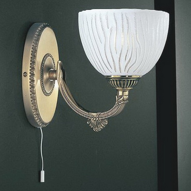 Бра Reccagni Angelo A 5600/1 Итальянского производсва – лучшее соотношение цена-качество. Этот светильник Классического стиля хорошо подойдет Для спальни и придаст помещению мягкий и приятный свет. Плафоны белые из стекла. Арматура бронза из металла. Кол-во ламп - 1шт. Общая мощность 60W