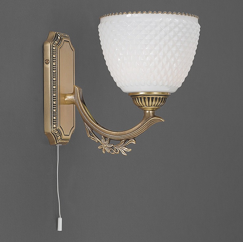 Бра Reccagni Angelo A 8651/1 Итальянского производсва – уникальное сочетание высокого качества и удивительных фактур. Этот светильник Классического стиля хорошо подойдет Для гостиной и придаст помещению мягкий и приятный свет. Плафоны белые из стекла. Арматура бронза из металла. Кол-во ламп - 1шт. Общая мощность 60W