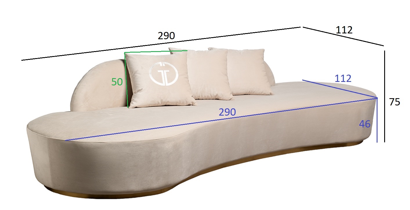 Необычный диван Lea как будто материализовался из фантастического фильма. Плавные мягкие линии, невысокая спинка с вертикальной прострочкой на тыльной стороне, удобное сиденье позволяют расположить этот диван так, чтобы он мог стать центральной доминантой. Наиболее выигрышно он смотрится в качестве острова, к которому можно подходить с разных сторон, это дополнительное преимущество, которое позволит его разместить в большом зале, лобби гостиницы, стильном салоне. В комплект входят три подушки 50*50см, одна из них с эмблемой GD. Габариты сиденья: ширина 290, глубина 112, высота от пола 46см