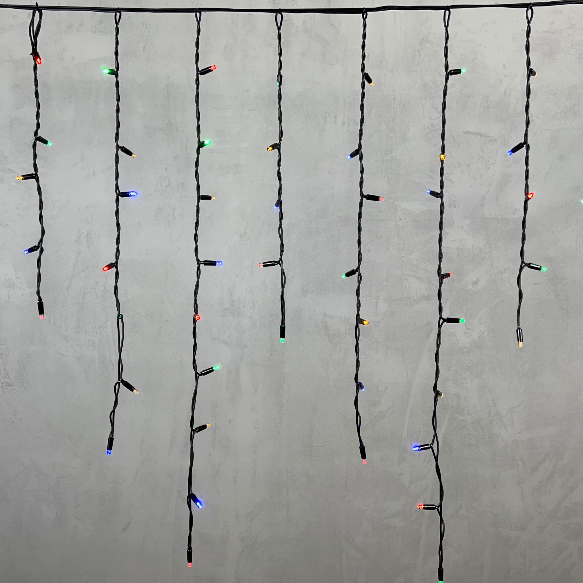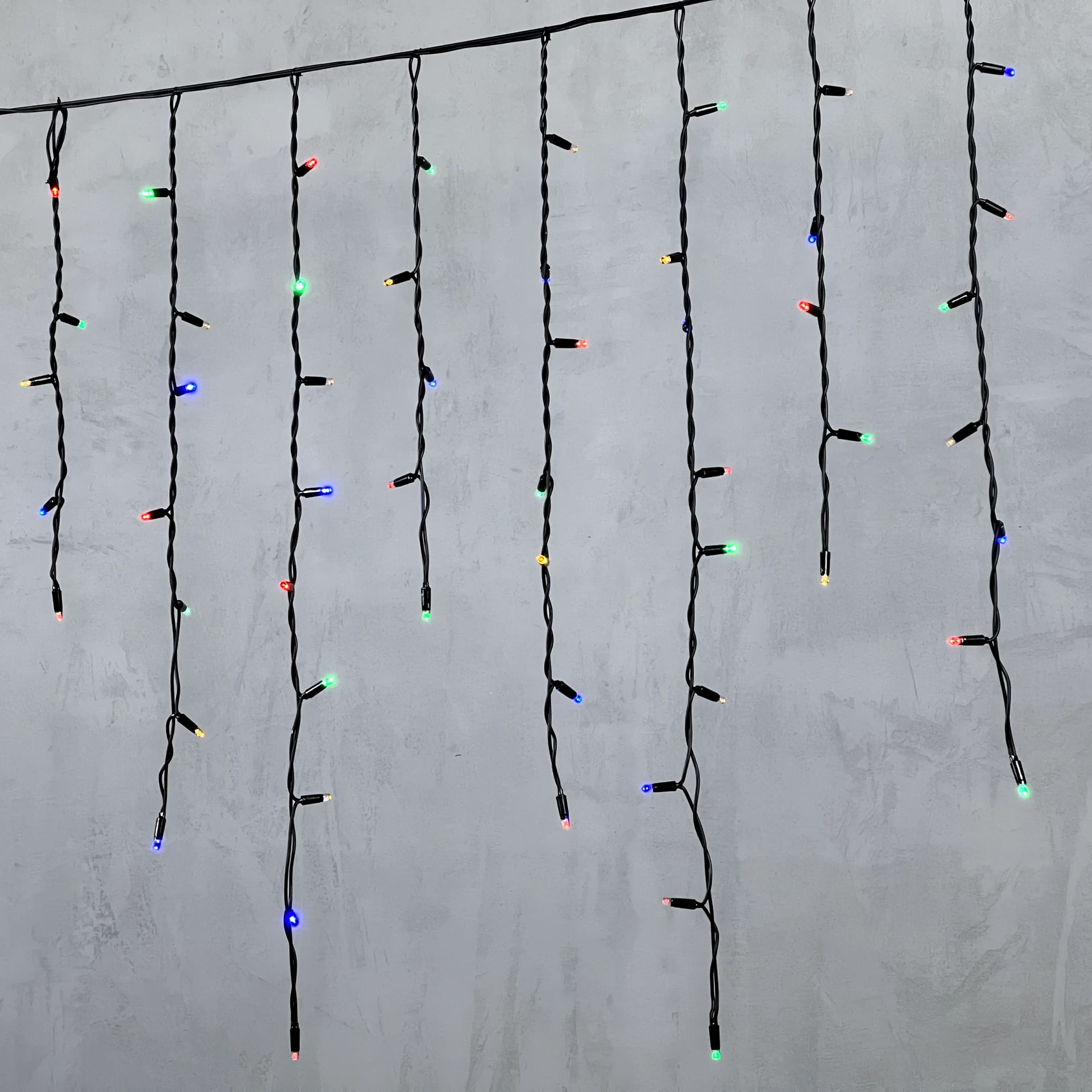 Гирлянда Бахрома 3, 2 x 0, 9 м Разноцветная 220В, 168 LED, Провод Черный Каучук, IP65 LTC LL168-1-2M в Кирове