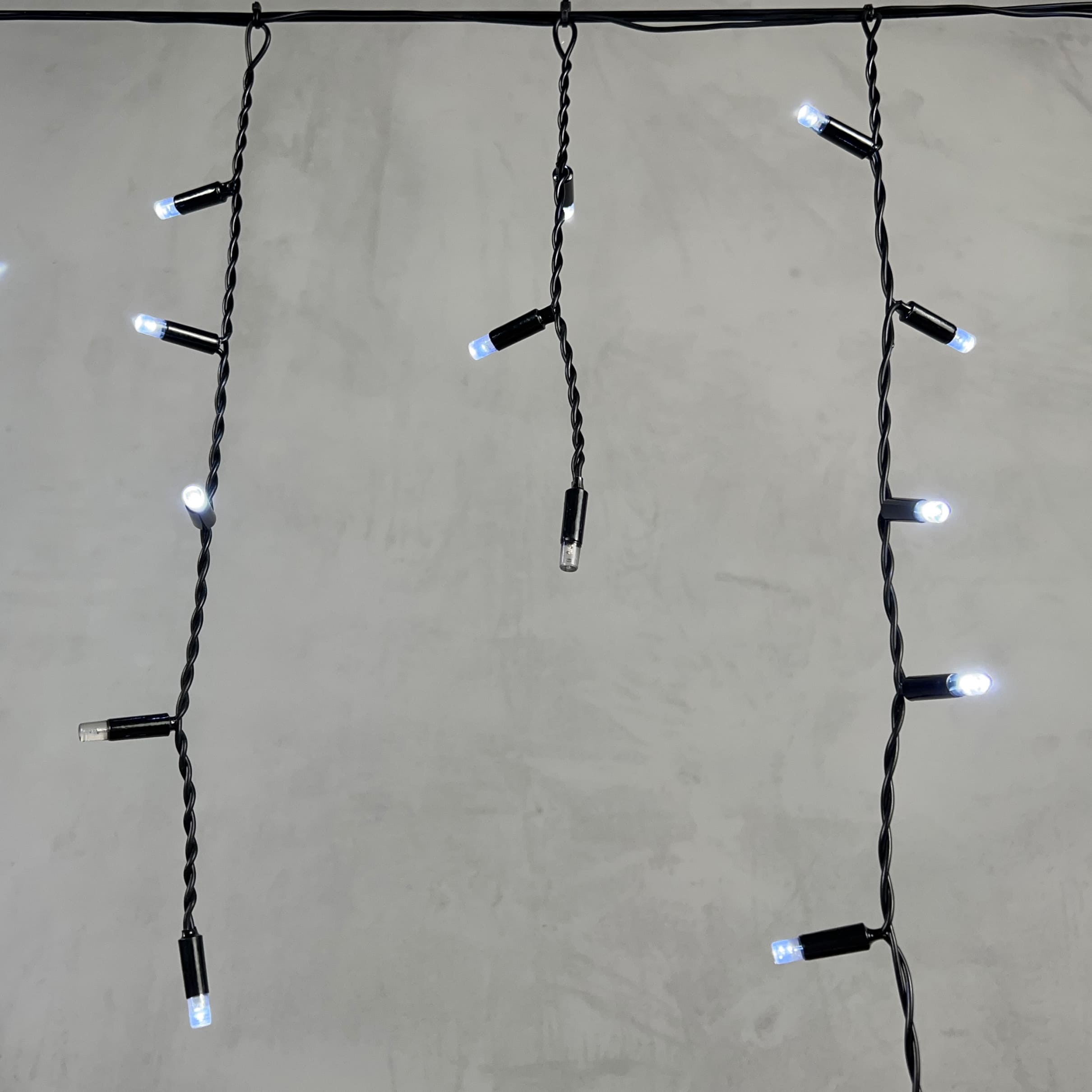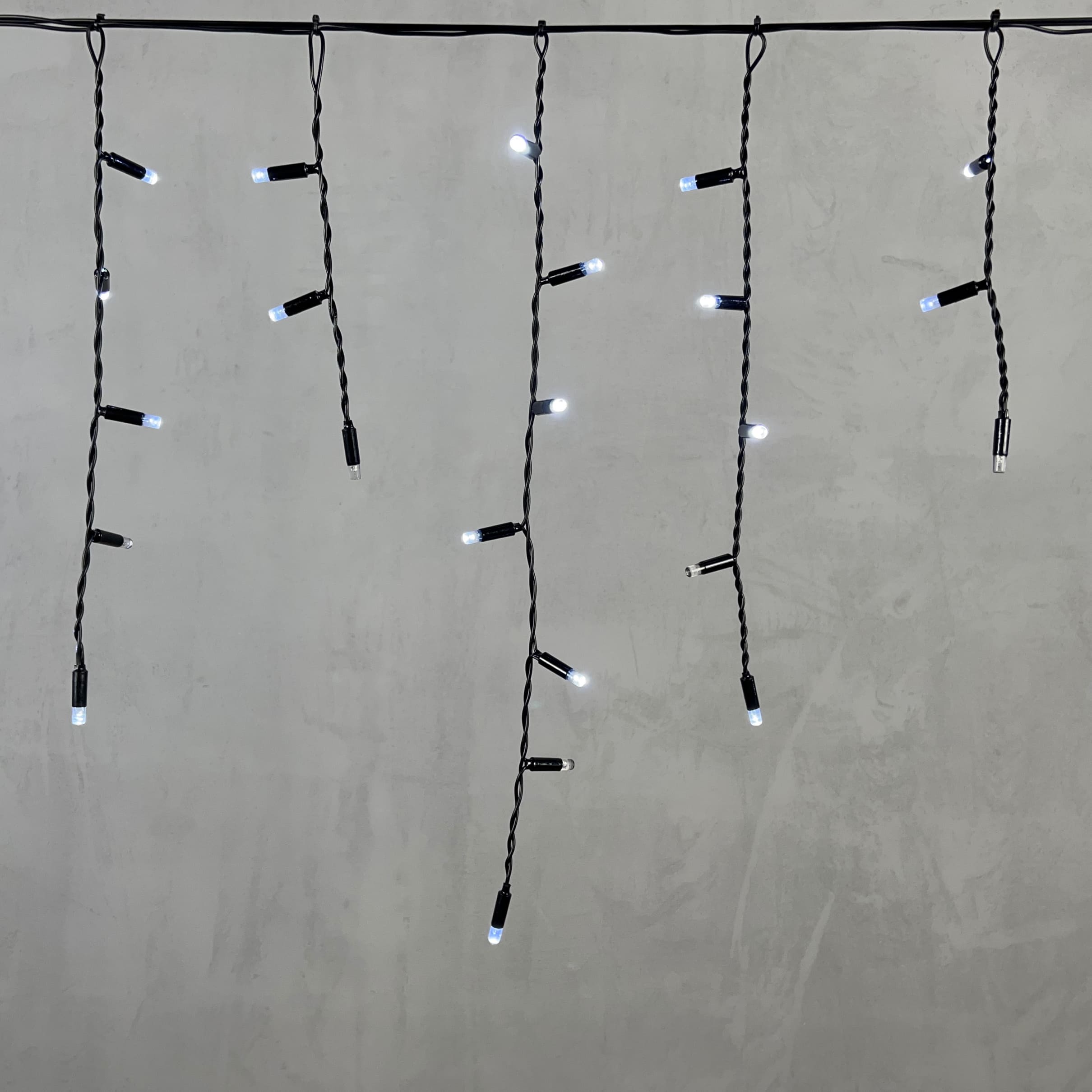 Купить "Гирлянда Бахрома с Колпачком 3,1 x 0,5 м Белая с Мерцанием Белого Диода 220В, 120 LED, Провод Черный ПВХ, IP65 LTC PIL120BLWCAP-11-2W"