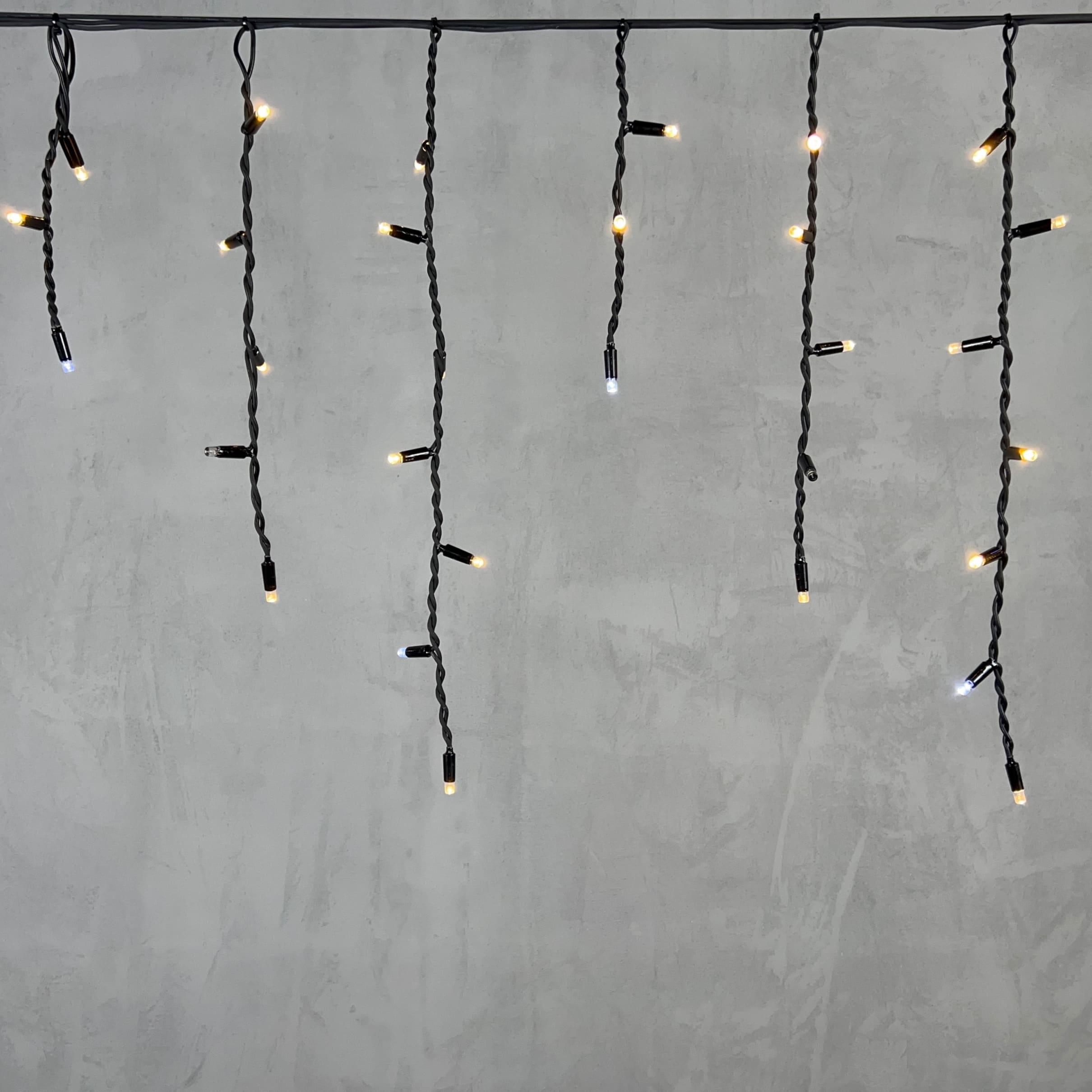 Купить "Гирлянда Бахрома 3,1 x 0,5 м Тепло-Белая с Мерцанием Белого Диода 220В, 120 LED, Провод Черный Каучук, IP65 LTC LL120BLW-1-2WW"