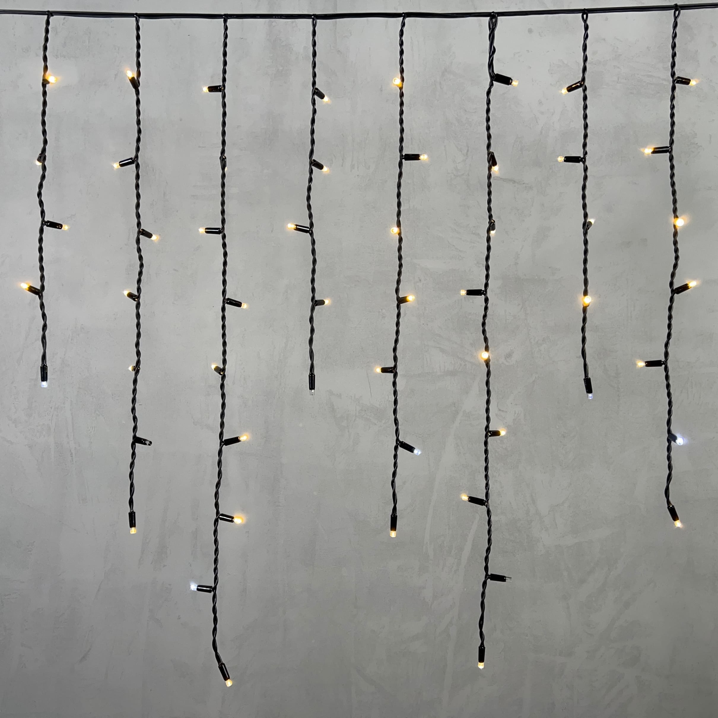 Купить "Гирлянда Бахрома 3,2 x 0,9 м Тепло-Белая с Мерцанием Белого Диода 220В, 168 LED, Провод Черный Каучук, IP65 LTC LL168BLW-1-2WW"