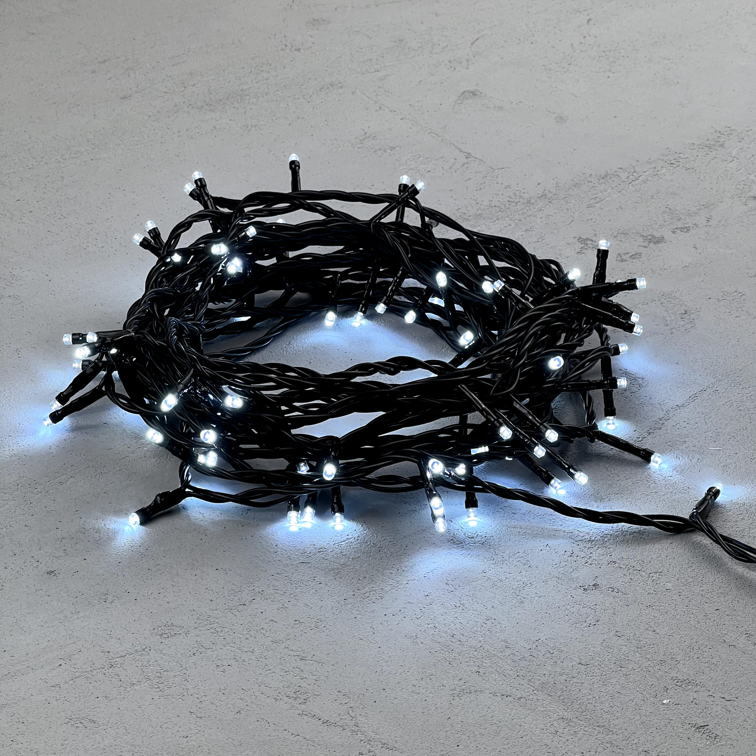 Гирлянда Нить 10м Белая 220В, 100 LED, Провод Черный ПВХ, IP54 LTC PST100-11-2W в Кирове
