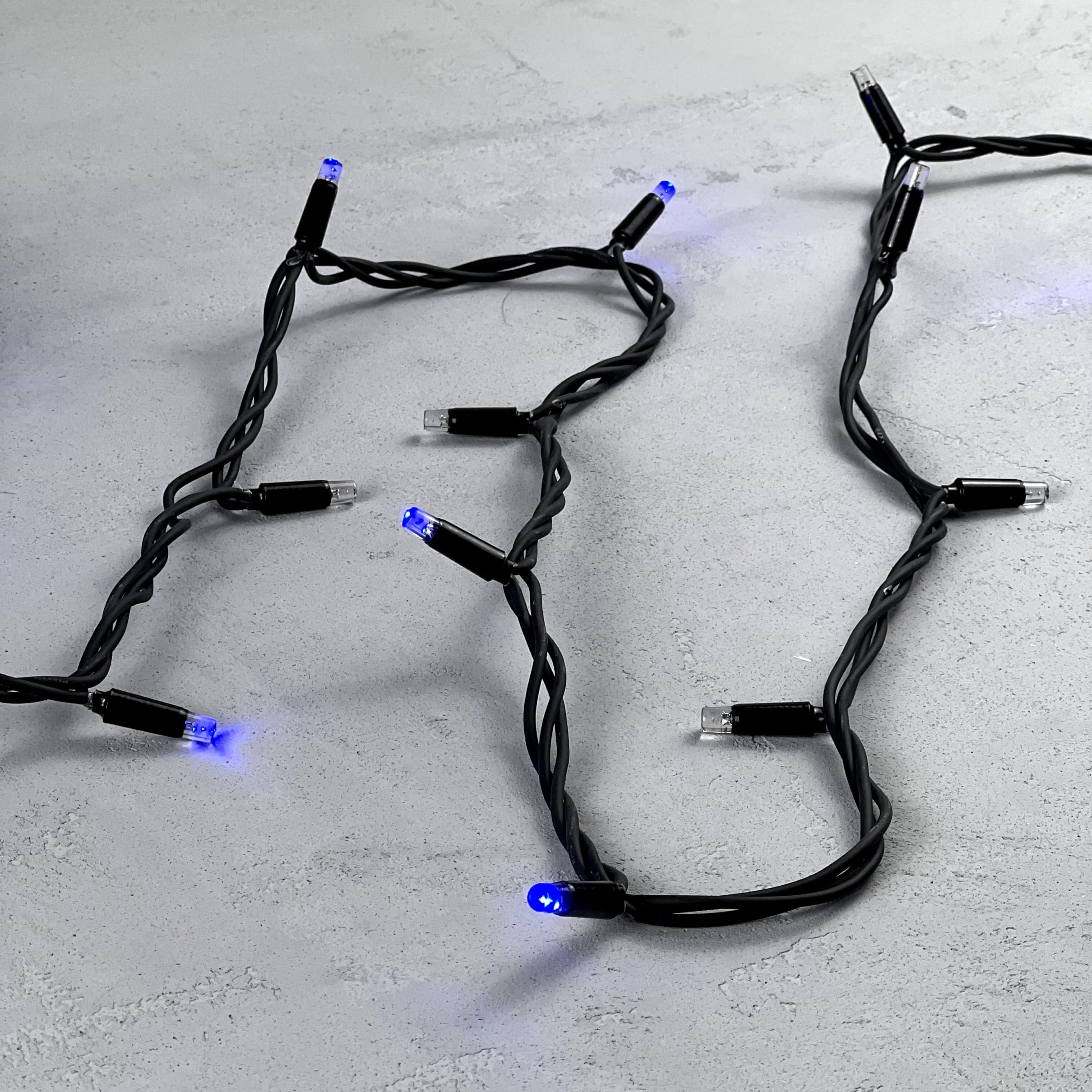 Купить "Гирлянда Нить 10м Синяя с Мерцанием Каждого Диода 220В, 75 LED, Провод Черный Каучук, IP65 LTC LL75ABL-1-2B"