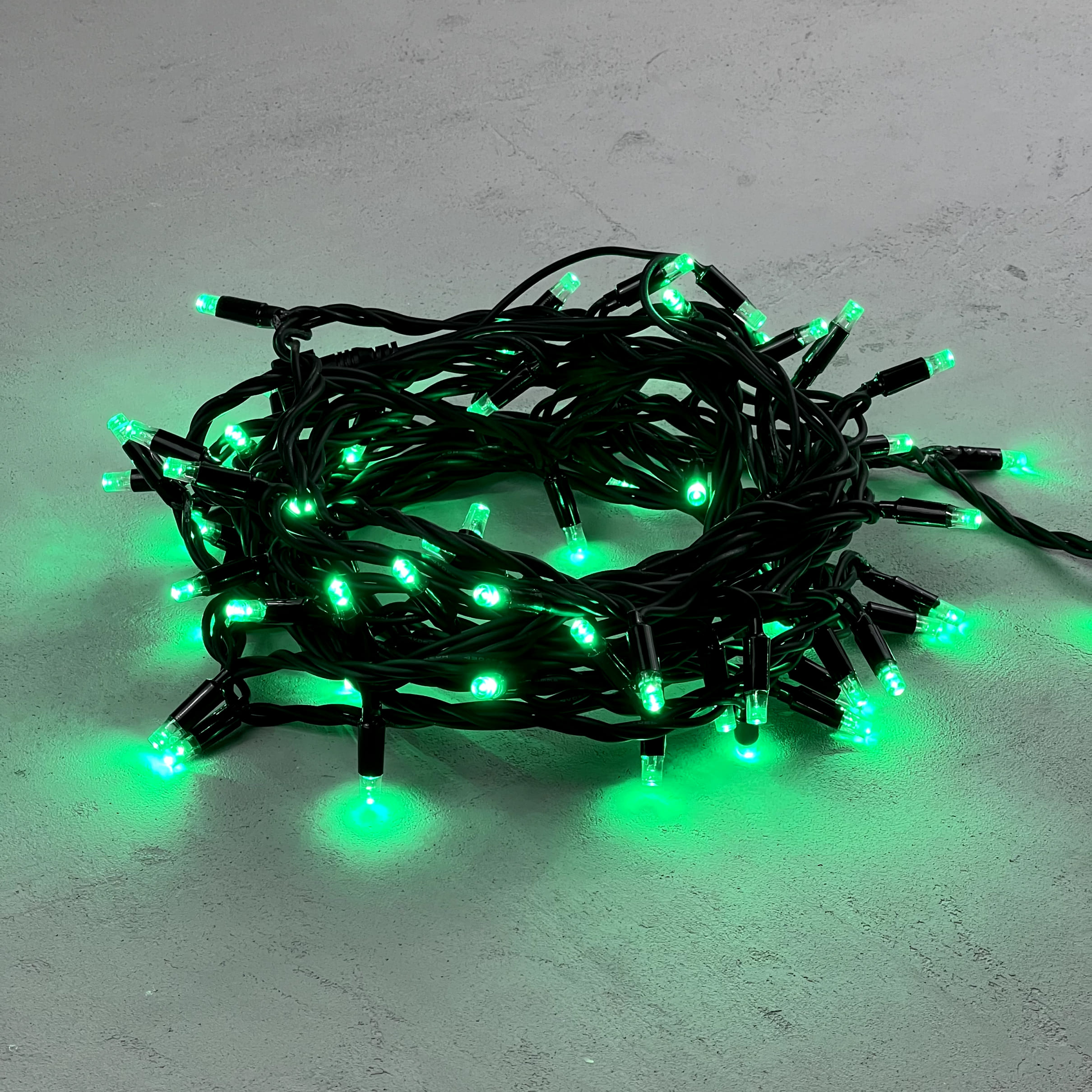 Купить "Гирлянда Нить 10м Зеленая 24В, 75 LED, Провод Черный Каучук, IP65 LTC LL75-1-1G"