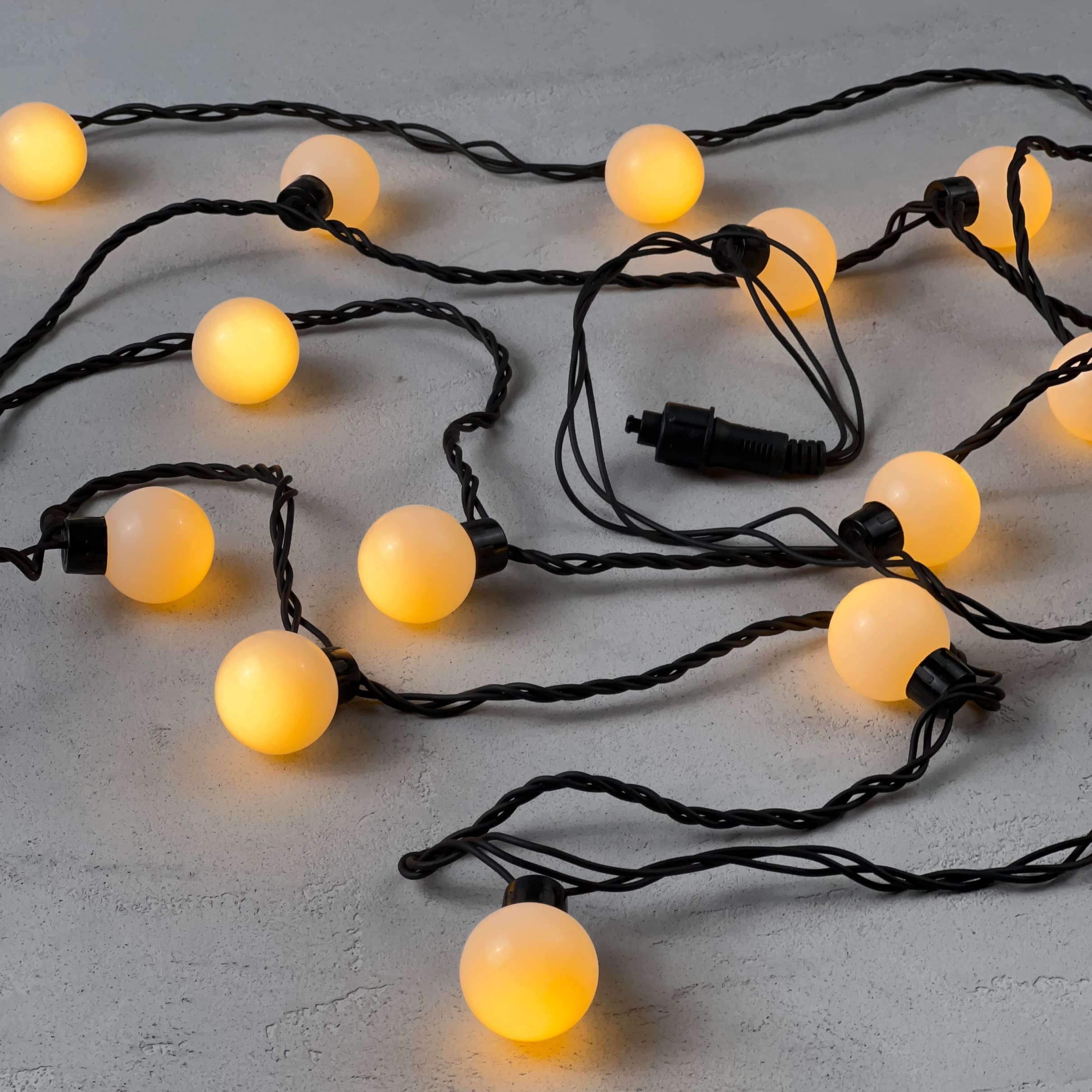Купить "Гирлянда «Шарики» 5м Желтая 220В, Диаметр Шарика 40мм, 20 LED, Провод Черный Каучук, IP65 LTC HB20-1-2Y"