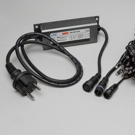 Блок Питания Электронный 150W для Нитей 24В, до 2000 LED, Провод Черный Каучук, IP65 LTC DM-150F-24V