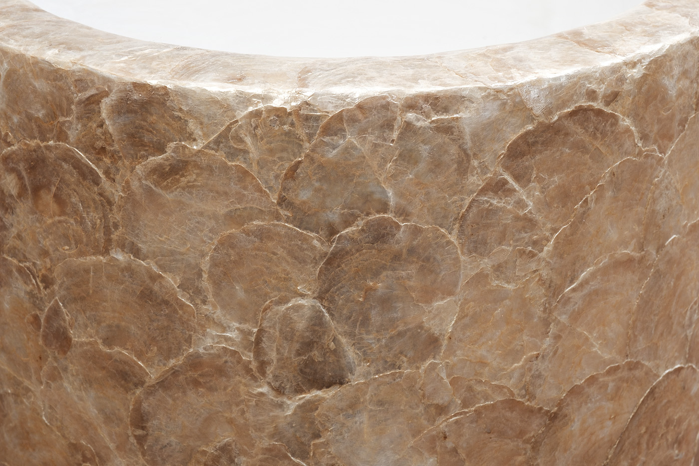 Невероятной красоты дизайнерское кашпо декорировано вручную натуральным перламутром из морских раковин и покрыто лаком. Жемчужно-белые и золотистые оттенки перламутра выглядят тепло и роскошно. Неровности перламутрового декора на поверхности кашпо не явля...