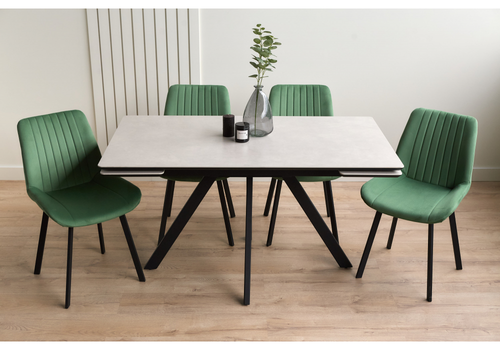 Материал каркаса - металл; Материал столешницы - Керамика; Цвет ножек - черный; Ширина - 80; Высота - 75; Длина стола в разложенном виде - 200; Длина - 140;