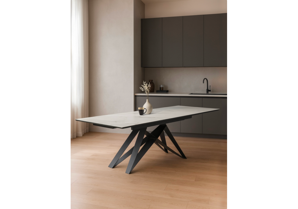 Купить "Керамический стол раздвижной Woodville Блэкберн 160(220)х89 белый мрамор snow white / черный 625943"