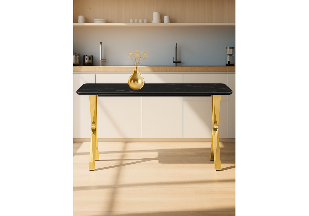 Купить "Керамический стол Woodville Селена 3 180х90 черный мрамор / золото 606413"