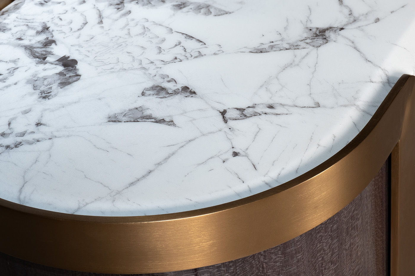 Комод из коллекции Sevilla, выполненный в изысканных дымчато-серых тонах, сочетает в себе самые последние тренды мебельного дизайна класса «люкс», отделку современными материалами с использованием шпона ценных пород дерева, стали цвета латунь, зашлифованной до сатинового блеска, и столешницей под мрамор. При изготовлении используется драгоценный шпон дерева лайсвуд. Это дерево отличается необычайно красивой древесиной с шелковистым блеском и характерным рисунком, напоминающим змеиную кожу. Элегантные округлые формы, благородство мраморной фактуры, высокое качество исполнения делает предмет коллекции образцовой мебелью для современной обстановки. Комод гармонично дополнят тумбочка арт. 58DB-NS20001, консоль арт. 58DB-CST2005, стол арт. 58DB-CST20050 и стеллаж арт. 58DB-SH20025 из этой же коллекции.