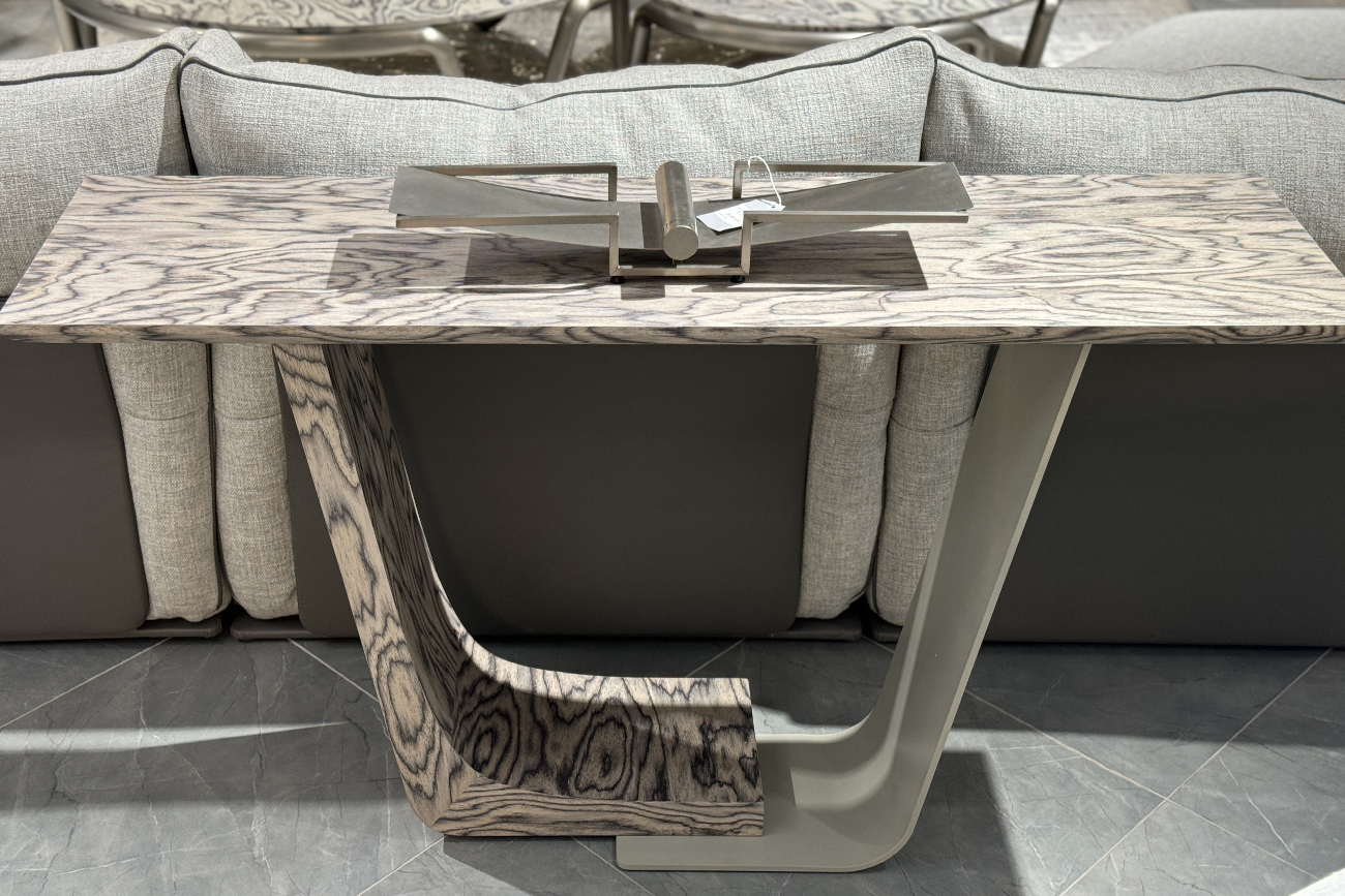 Эта консоль из светлого шпона привлекает внимание выразительной архитектурной формой и благородной текстурой. Лёгкая, почти скульптурная конструкция создаёт ощущение баланса и визуальной динамики, не утяжеляя пространство. Плавный изгиб опоры подчёркивает дизайнерский характер предмета, делая его самостоятельным акцентом интерьера. Дизайнерская консоль светлый шпон органично вписывается в современные пространства в стиле modern luxury, современная классика и минимализм, добавляя интерьеру элегантность и продуманную выразительность.