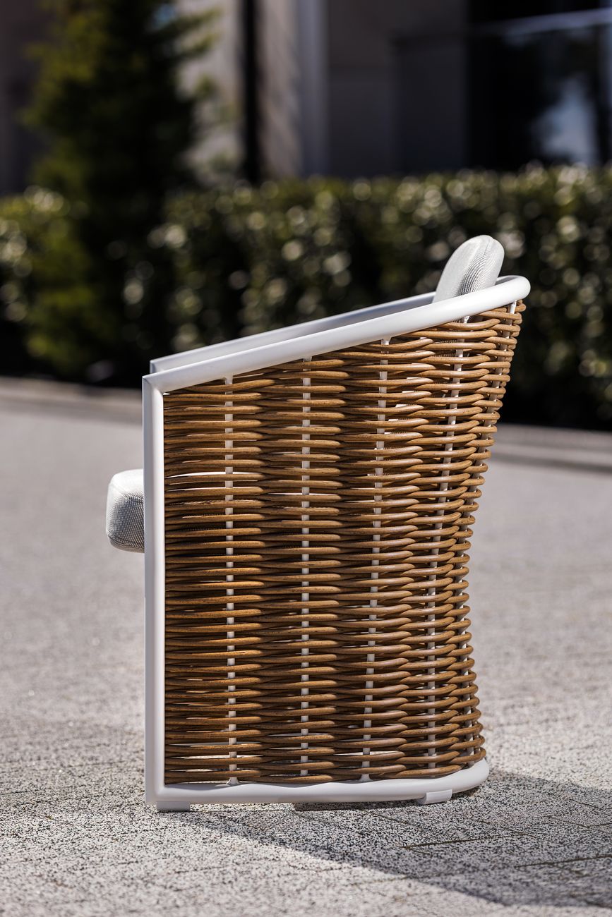 Красивое и удобное уличное кресло "Мэвис" подарит прекрасные часы отдыха на свежем воздухе. Сварной алюминиевый каркас, окрашенный в белый цвет по особой технологии, чрезвычайно устойчив к появлению ржавчины и сколов. Плетение из полимерной лозы выполнено вручную и защищено патентом, подушки спинки и сиденья из эксклюзивной полиэстровой ткани Wintech исключительно устойчивы к ультрафиолетовому излучению и атмосферным воздействиям, обладают высокими характеристиками водонепроницаемости, грязеустойчивы и легко моются. Вы можете оставить кресло под жарким солнцем или проливным дождем, оно будет выглядеть так же прекрасно, как и после покупки. Продукция этого производителя отмечена многочисленными международными наградами в области дизайна и индустрии гостеприимства. Габариты сиденья: ширина 55см, глубина 44см, высота 46см. В комплект входят: подушка сиденья (большая) и подушка спинки (малая). Сочетается со столом «Верона» 39AR-STOL-304 BEL.