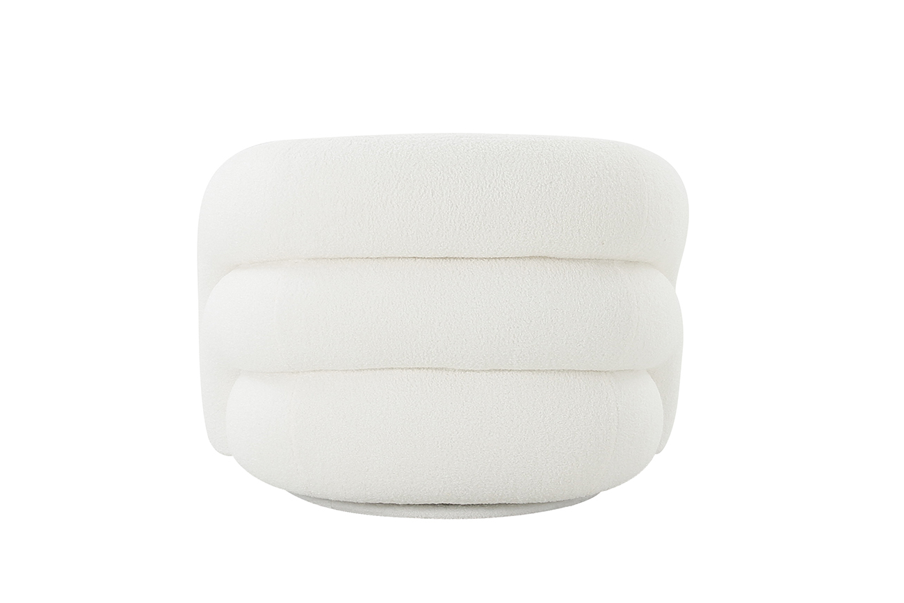 Удобное белое кресло футуристической формы выполнено из мягкой обивки, по фактуре напоминающей овечью шкуру. Оригинальные мягкие выпуклые объемы внешней части несомненно будут притягивать взор и позволят в полной мере воспользоваться преимуществами этого кресла как дизайнерского объекта, декоративного на все 360 градусов.