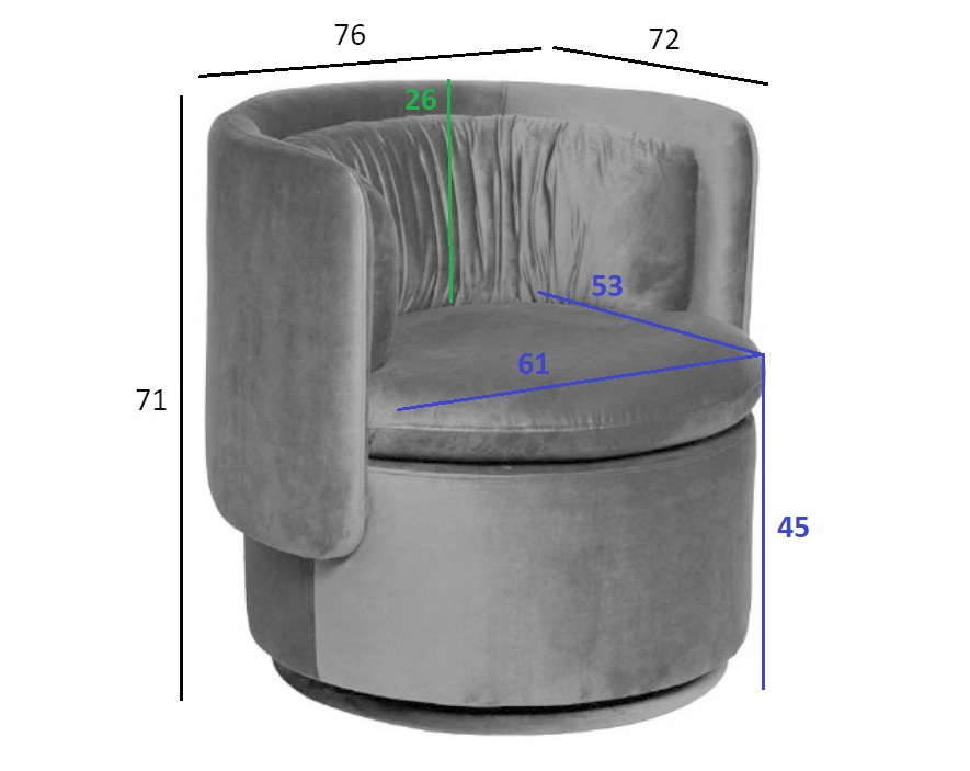Габариты сиденья: 61*53см, высота от пола 45см, высота спинки 26см.