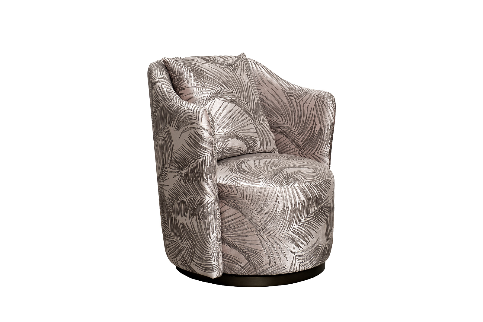 Красивое вращающееся кресло VERONA идеально подойдет для современного интерьера, в котором важную роль играет эксклюзивность и высокое качество мебели. За счет надежного механизма сидение легко вращается, делая кресло мобильным и удобным как для отдыха, так и для работы. Классическая эргономичная форма, спинка с подлокотниками, мягкая подушка делает дизайнерское кресло с принтом «пальмовые листья» отличным выбором для гостиной, спальни, холла. Оно будет эффектно смотреться в жилых интерьерах ар-деко, неоклассика, фьюжн, шебби-шик, контемпорари.