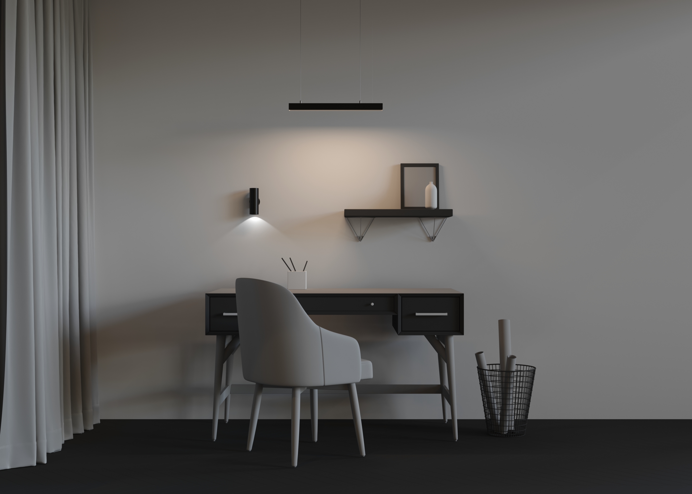 Подвесные линейные светильники?Это несколько изделий с уникальными чертами, в одном стиле и цветовой гамме.