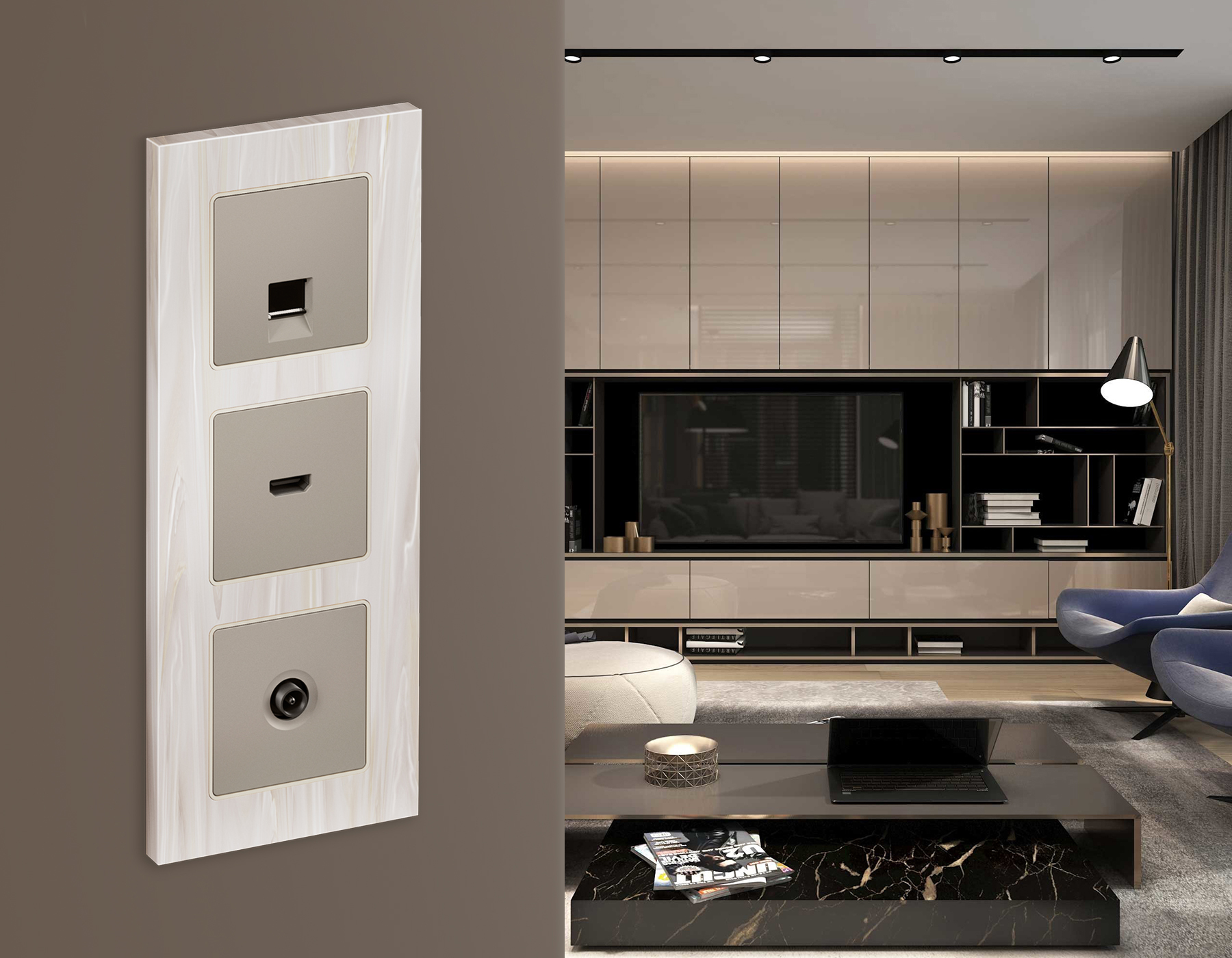 Многогранный ассортимент Ambrella Volt включает в себя механизмы, лицевые панели и рамки, а также комплекты, доступные в различных цветовых решениях. Продукция представлена в модульном исполнении, что позволяет гибко настраивать внешнийвид и функциональность. Вам будет легко заменить лицевую панель, рамку или механизм, найдя идеальное сочетание цветов.