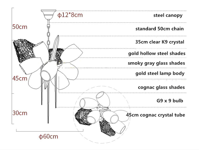 - Количество ламп: 9 шт