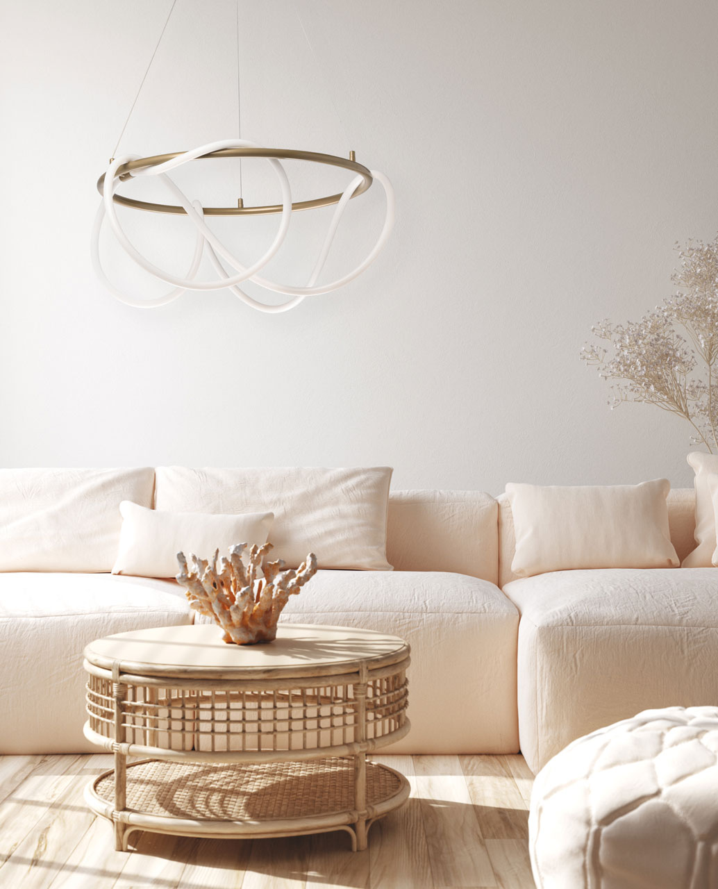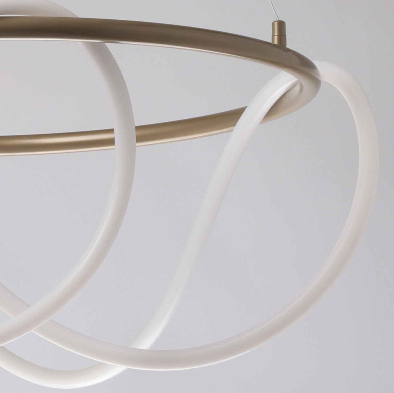 Металлическое основание светильника окрашено в цвет перламутрового золота, матировано. Гибкий плафон выполнен из белого матового силикона.