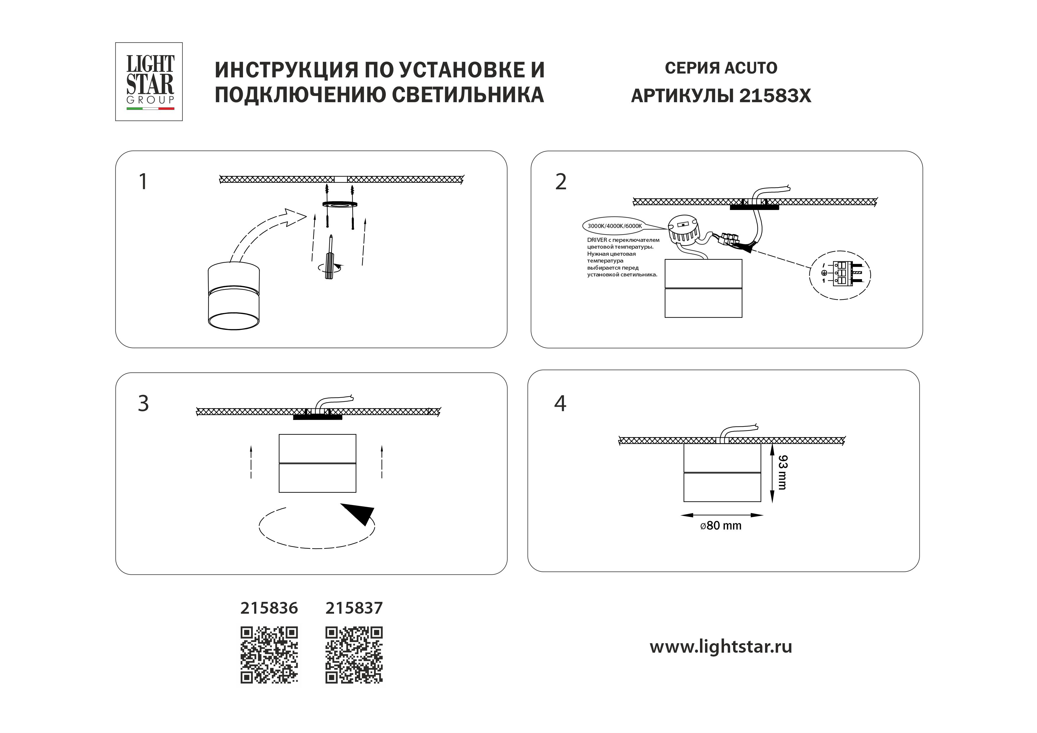 Накладной светодиодный светильник с переключателем света Lightstar Acuto 215836 в Кирове