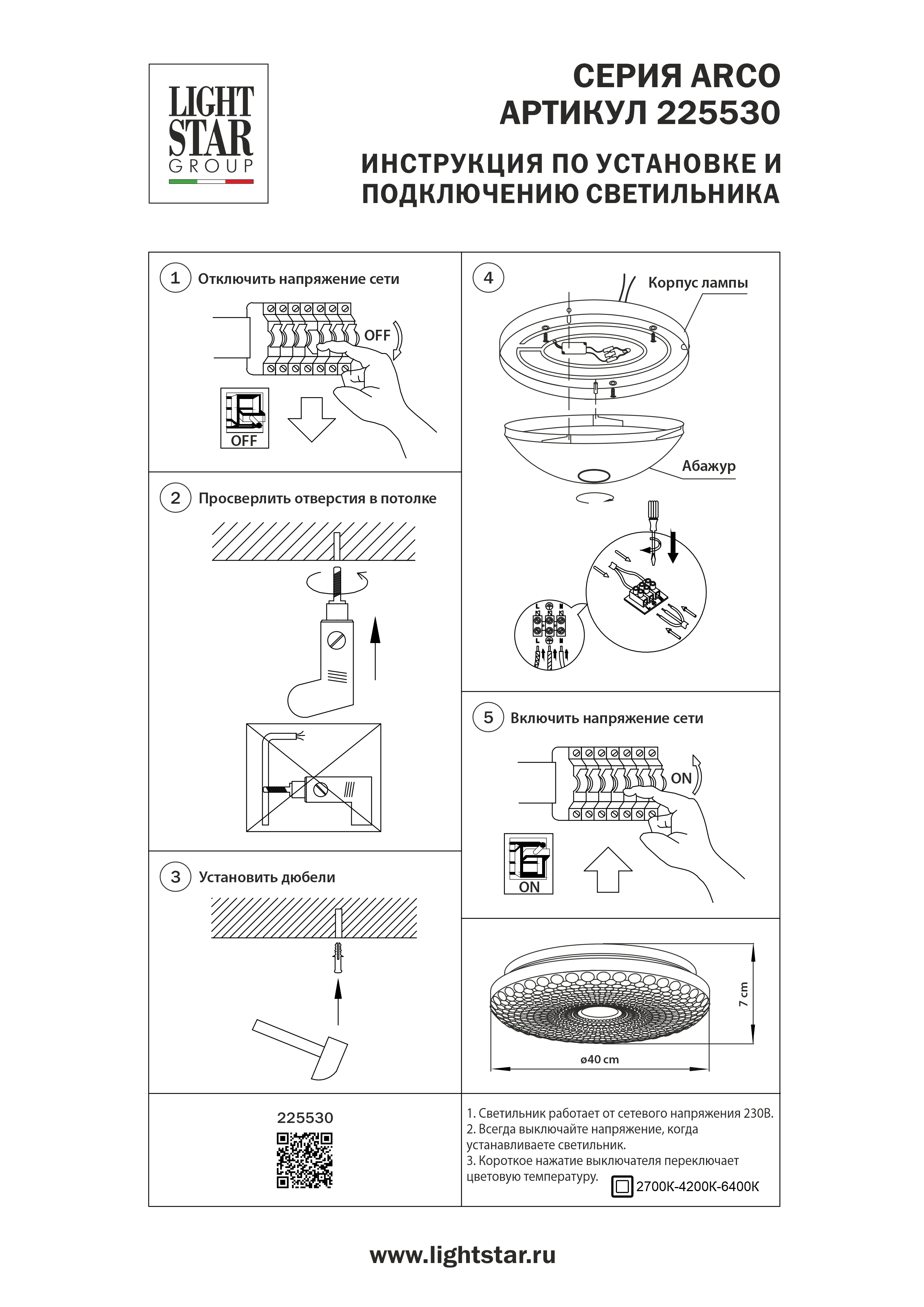 - Цветовая температура, K: 2700/4200/6400