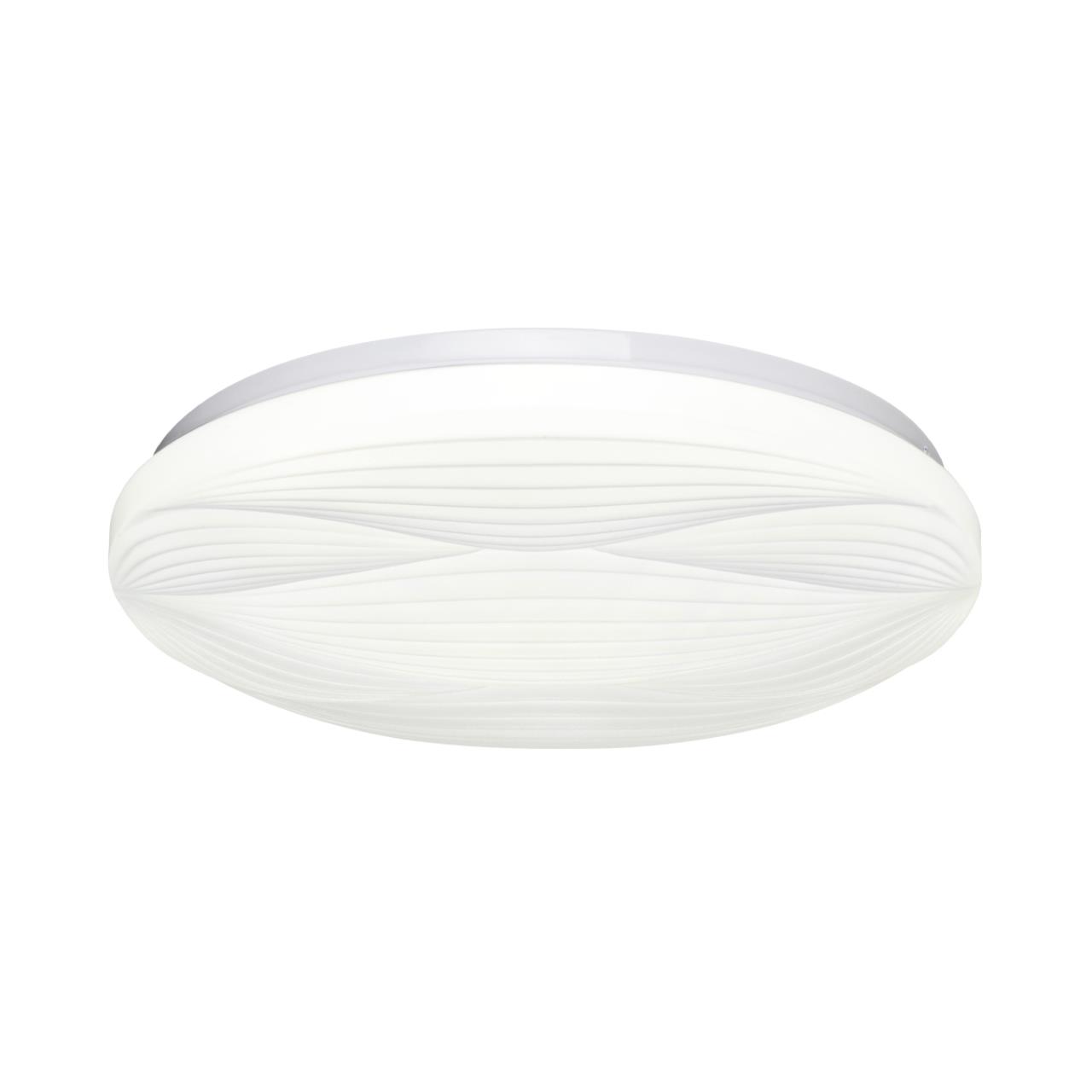 Светильник 7686/DLN линии HIMAR состоит из металлического основания (базы) и пластикового рассеивателя. Материал рассеивателя — высококачественный пластик марки PMMA 2.0 белого цвета с матовой поверхностью. Пластик обеспечивает светильнику равномерное рассеивание и хорошее светопропускание. Форма плафона: круглая, декорирована рельефом из пластика в виде узора белого цвета. Степень защиты IP43 позволяет использовать светильник в определенных зонах влажных помещений. В комплект входит LED-модуль с линзами мощностью 48 Вт, соответствующей лампе накаливания 515 Вт, а также переключатель температуры цвета (ССT) на драйвере, с помощью которого осуществляется изменение цветовой температуры 3000/4000/6000 К и переход светильника в режим теплого/белого/холодного света. Для установки необходимого режима рекомендуется использовать удлиненный тонкий предмет типа небольшой отвертки.