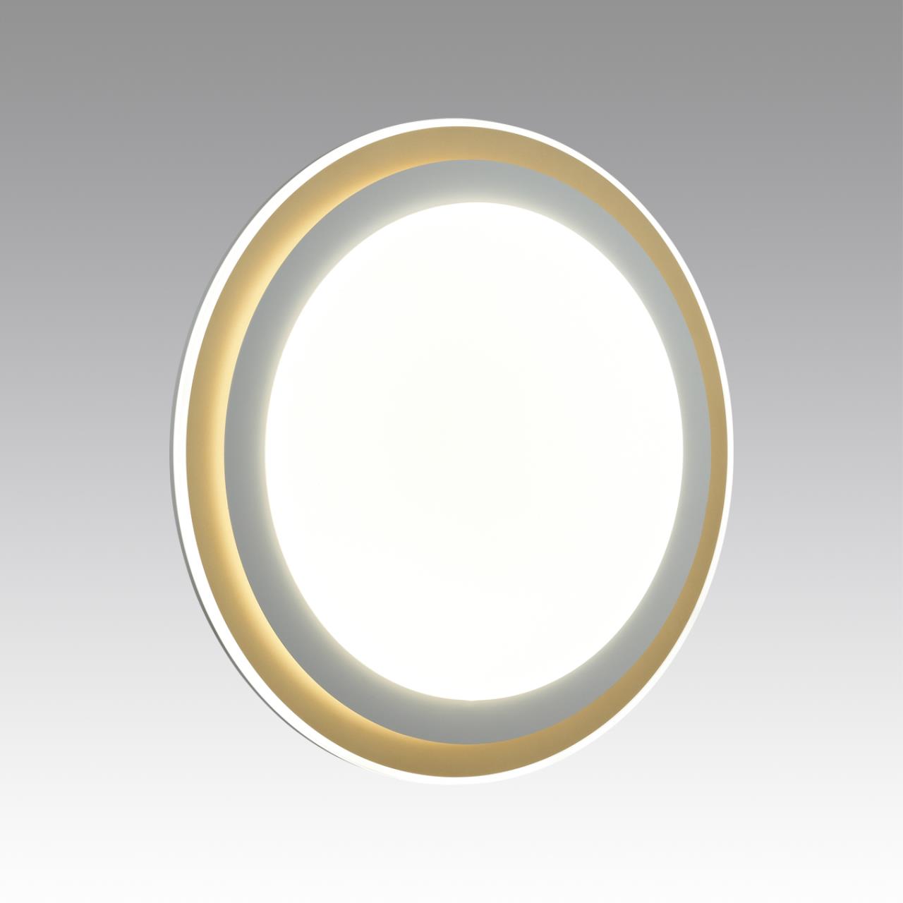 Светильник 7630/EL линии SETTA состоит из металлического основания (базы) и пластикового рассеивателя. Материал рассеивателя - качественный акрил белого цвета с матовой поверхностью, без текстуры. Пластик обеспечивает светильнику равномерное рассеивание и хорошее светопропускание. Форма плафона: круглая, декорирована многослойным ободом из пластика белого и золотистого цветов. Степень защиты IP43 позволяет использовать светильник в определенных зонах влажных помещений. В комплект входит заменяемый LED модуль с линзами, мощностью 72Вт, которая соответствует лампе накаливания 730Вт. А также пульт ДУ, с помощью которого осуществляется плавное изменение цветовой температуры 3000-6300К, изменение яркости, переход в режим переключения теплого/белого/холодного/ночного света. Светильник имеет функцию "память".