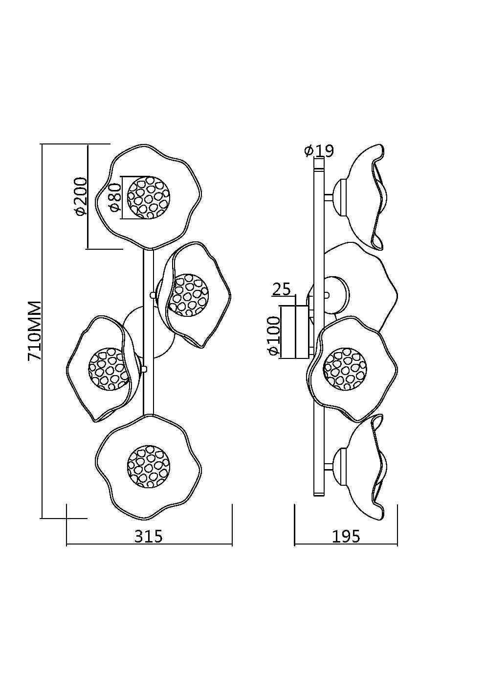 - Количество ламп: 4 шт