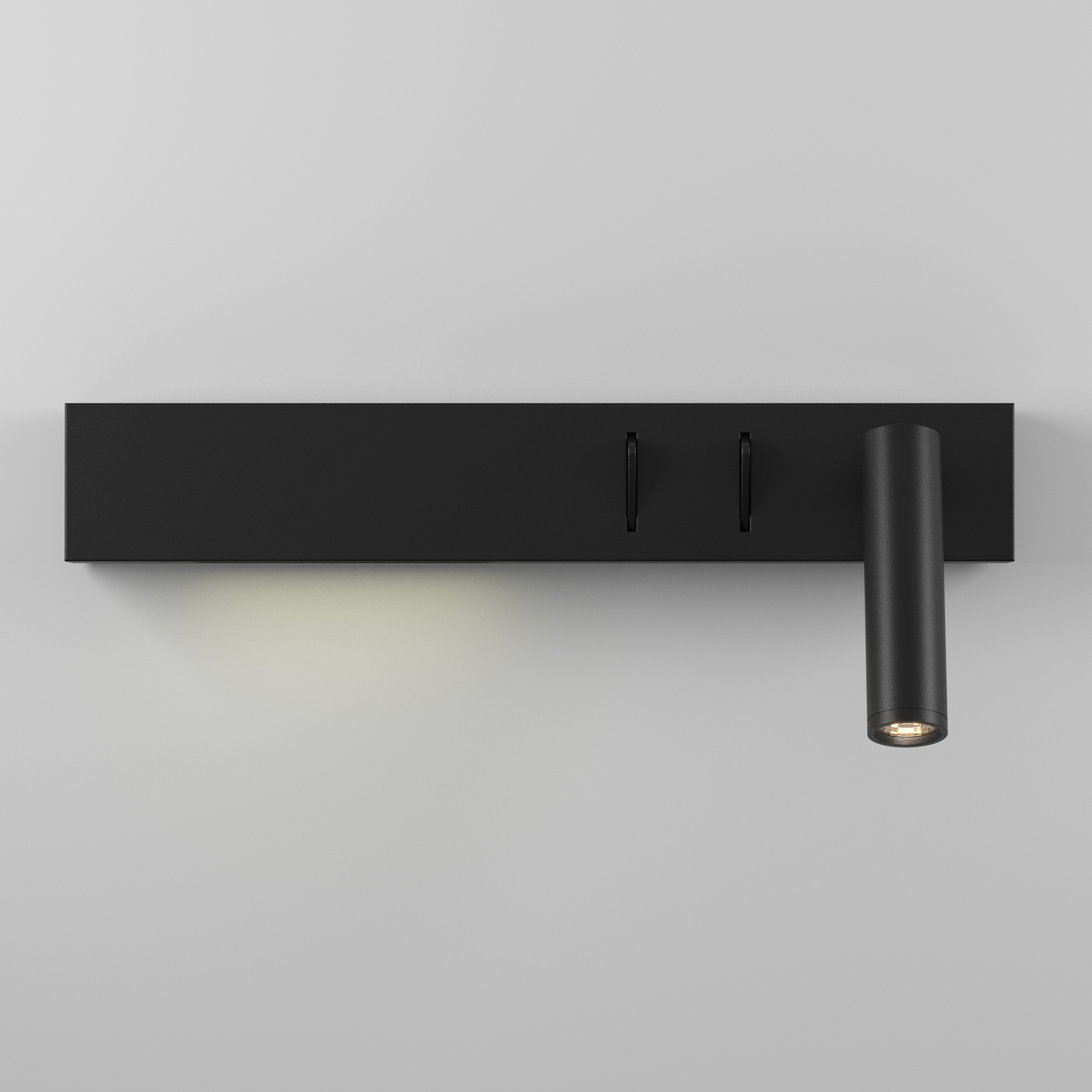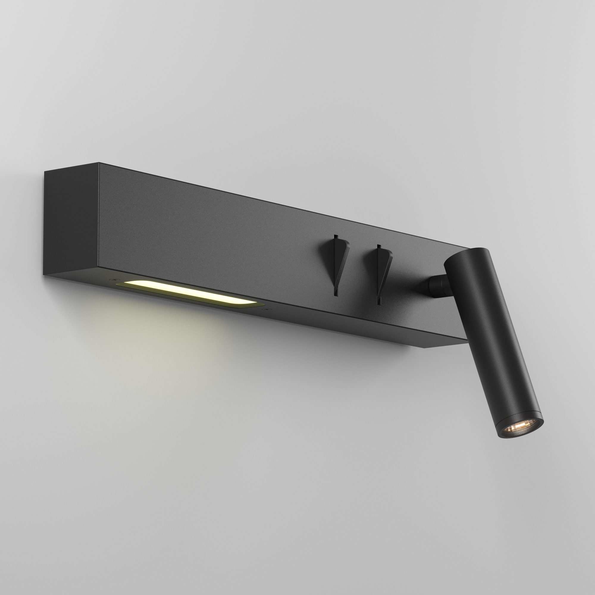 Настенные прикроватные светильники с двумя встроенными источниками света. Локальная подсветка позволит осветить книгу или журнал, а рассеянная создаст атмосферу непринужденности. Светильник управляется выключателями, расположенными на корпусе. В качестве обоих источников света использованы встроенные светодиоды теплого спектра.