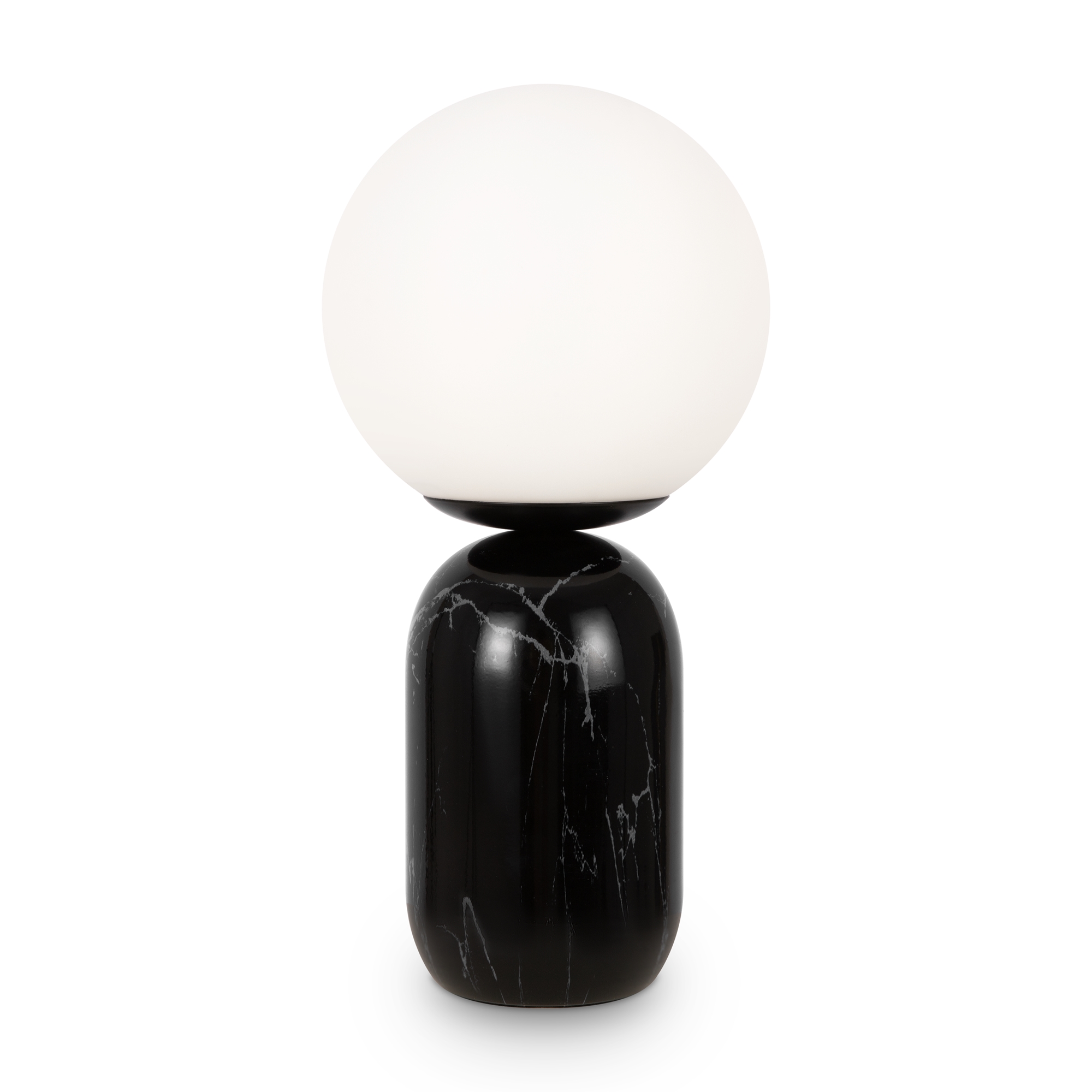 Материал основания — натуральный мрамор с уникальным рисунком. Цвета — белый, черный. Шаровидный плафон. Функция touch-dimming позволяет регулировать яркость света. Источник света — лампа с цоколем E14.