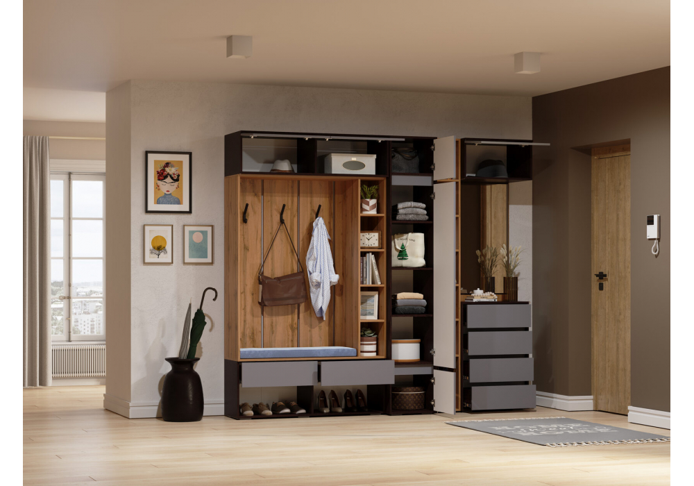 Купить "Навесной шкаф Woodville Роут малый венге / графит софт 593734"