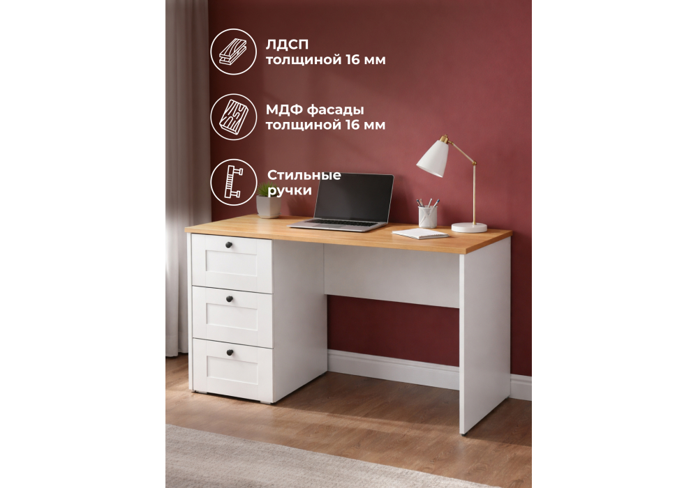 Купить "Письменный стол Woodville Опра белый шагрень / дуб золотой craft 676810"