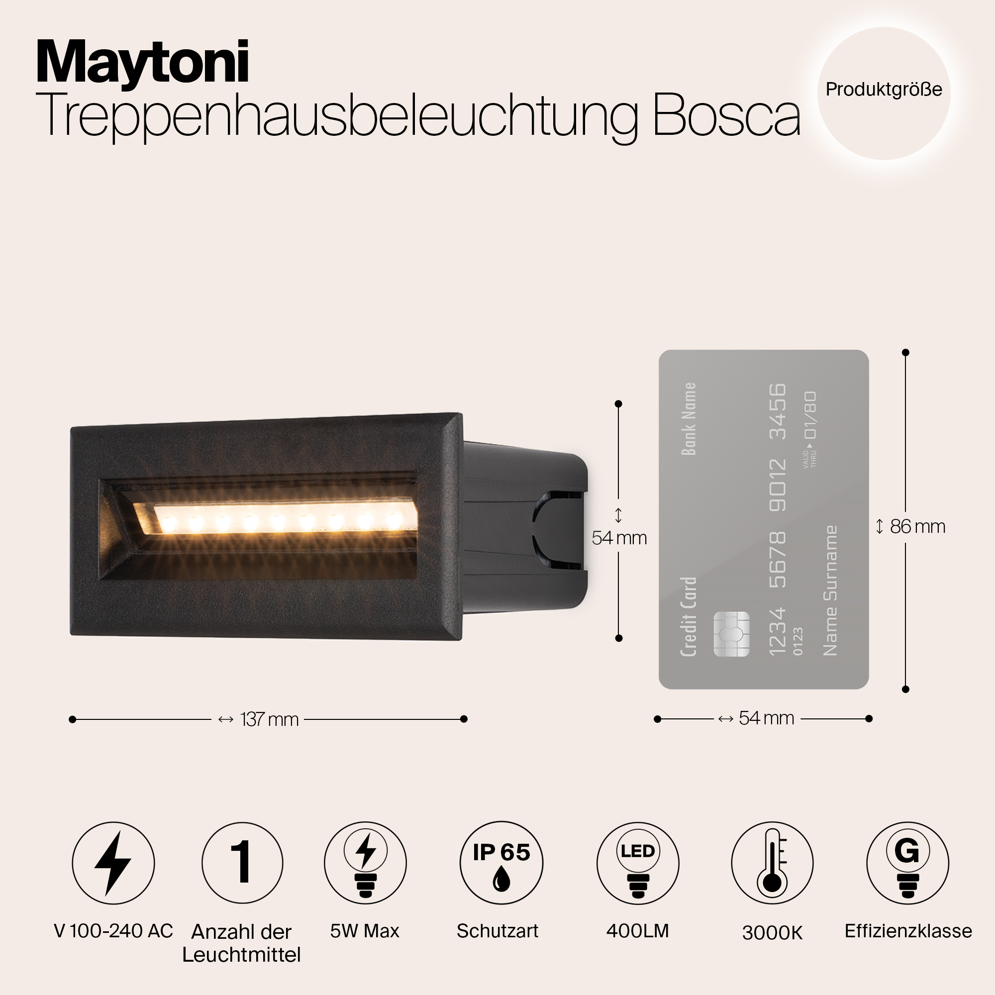 Мощность связана с величиной светового потока люмен (Lm), и от неё зависит яркостью лампы. - Общая мощность: 5 W