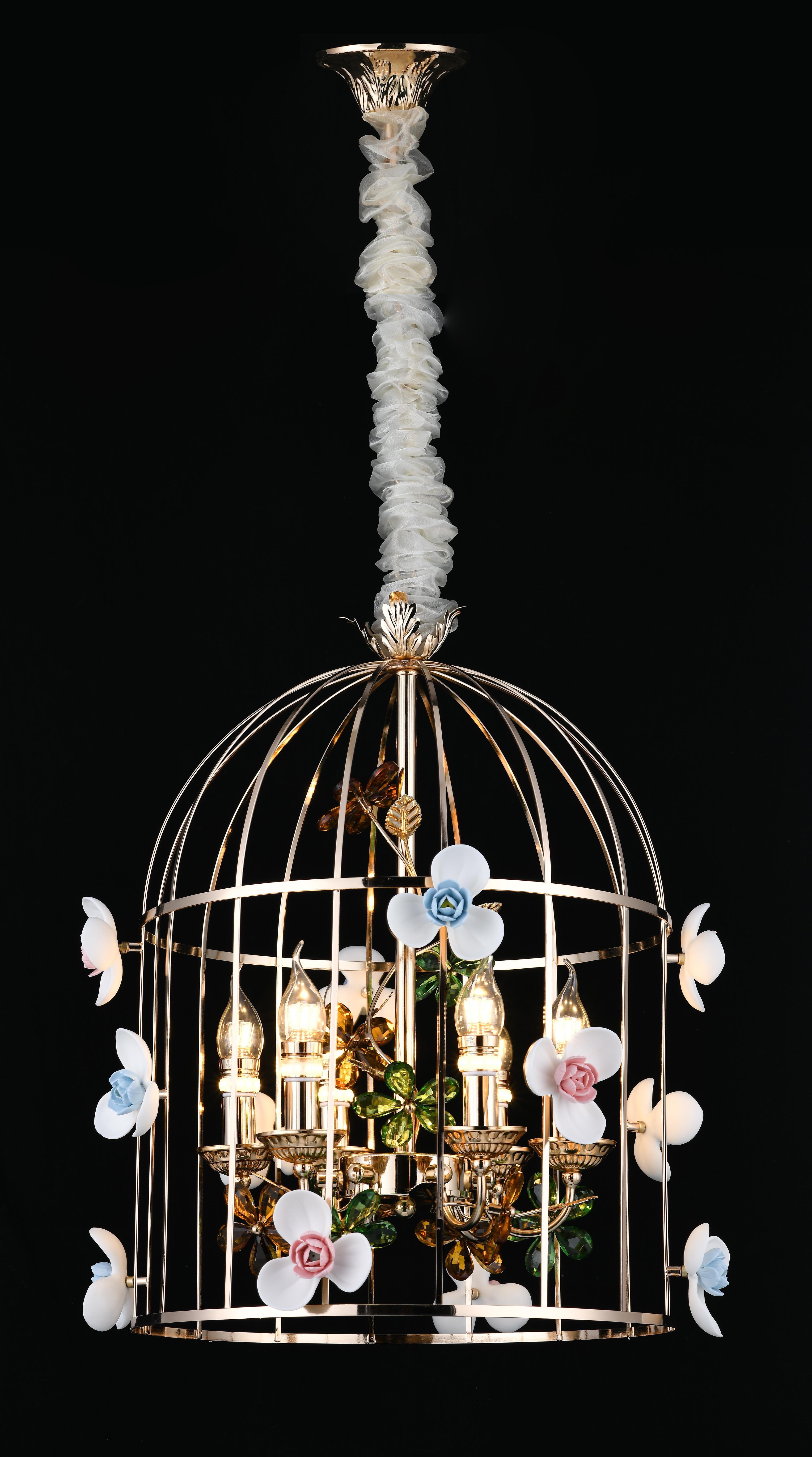 Эксклюзивная подвесная люстра в стиле неоклассика является воплощением утонченного вкуса и безупречного стиля. Подобное изделие создано для тех, кто ценит сочетание традиционной эстетики с современными технологиями. Золотистый цвет придает люстре благородный вид, а керамика  подчеркивает её изящество.