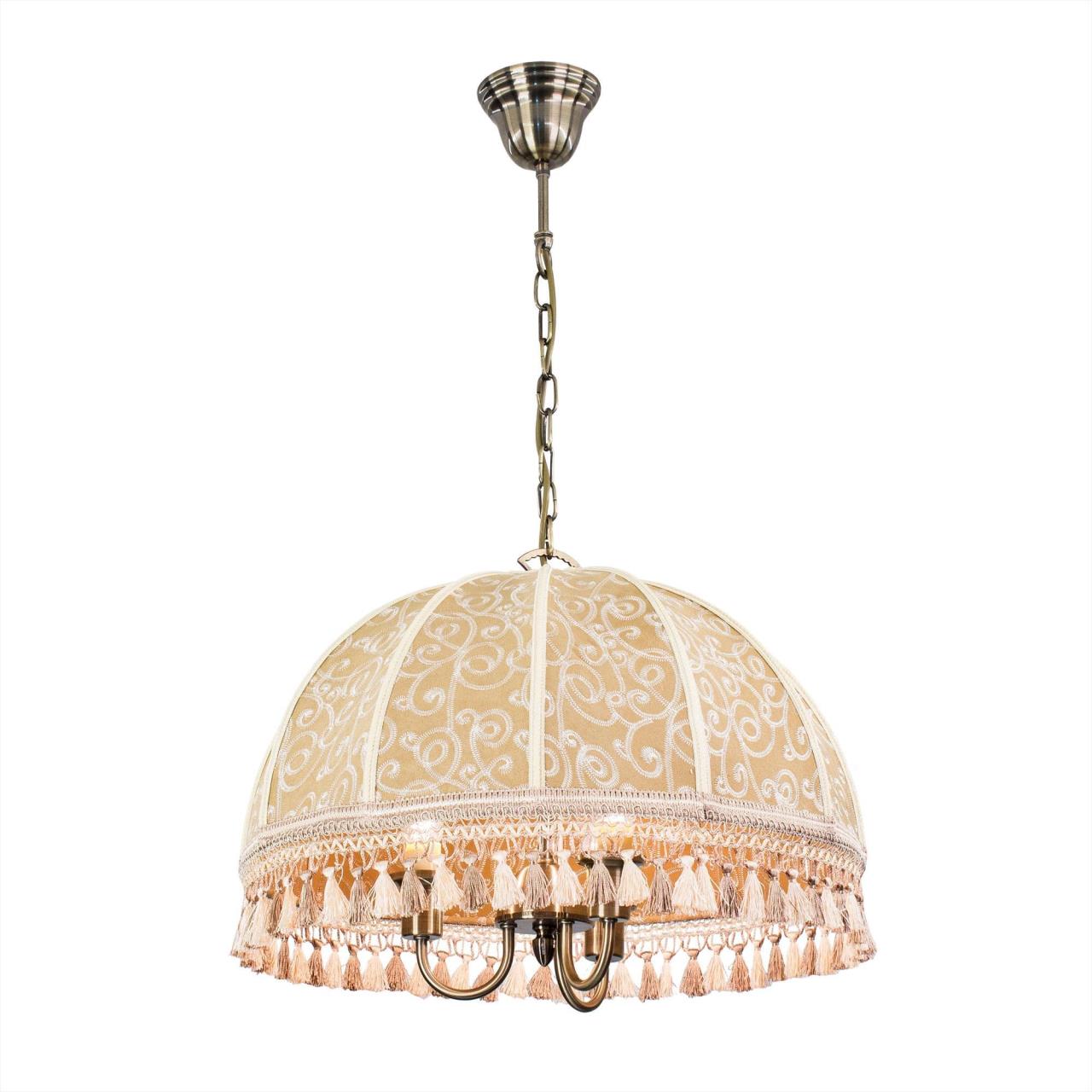 Подвесная трёхрожковая люстра на цепи Citilux Базель CL407135 с классическим абажуром. Корпус светильника металлический, цвет бронза. Абажур тканевый, цвета капучино, украшен изящной вышивкой и декорирован бахромой. Модель подойдёт для освещения уютной гостиной, кухни или веранды в загородном доме или на даче. Поможет создать комфортную атмосферу в кафе и ресторане, великолепно выглядит над столом. Подходит для всех типов потолков, в том числе натяжных, тип крепления – крючок. В изделии используются лампы с цоколем Е14, максимальной мощностью для ламп накаливания 60Вт, светодиодные лампы можно устанавливать более яркие. Высота регулируется от 50 до 135см, диаметр 51см, осветит около 9м².