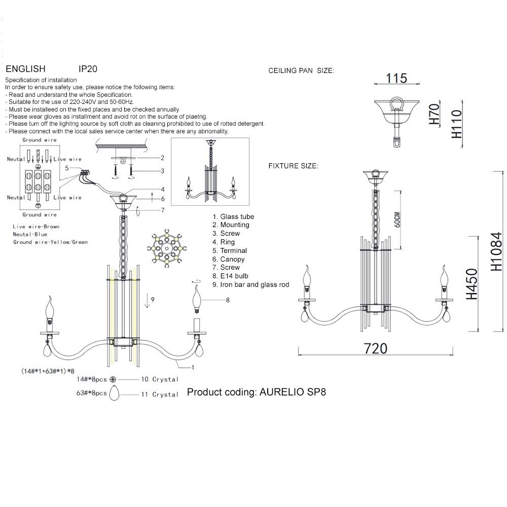 - Материал плафонов: Хрусталь
