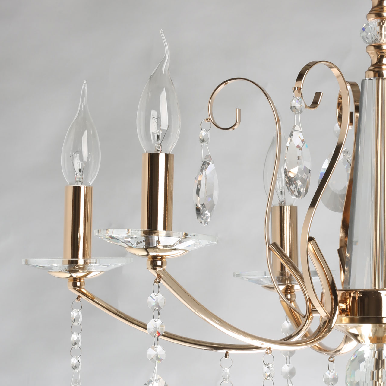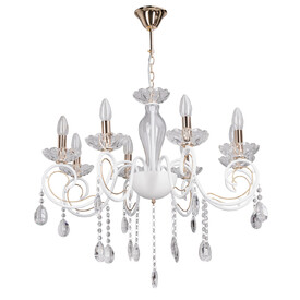 Придать модели воздушности помогает регулируемый подвес, который позволяет адаптировать люстру к высоте потолков. Чтобы украсить светильник и сделать его еще более декоративным, стоит приобрести лампы формы "свеча" или "свеча на ветру".