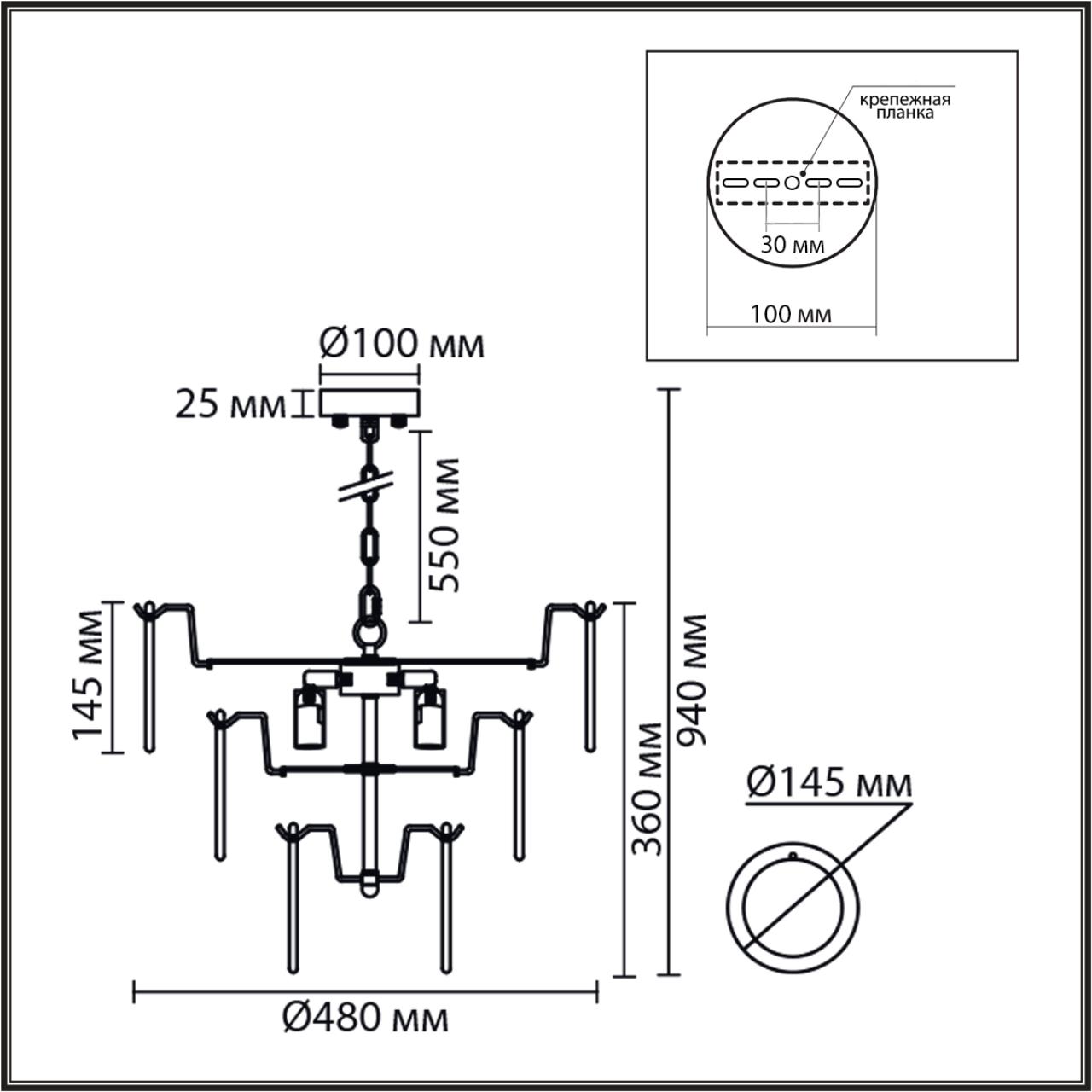 - Цвет плафонов: Белый
