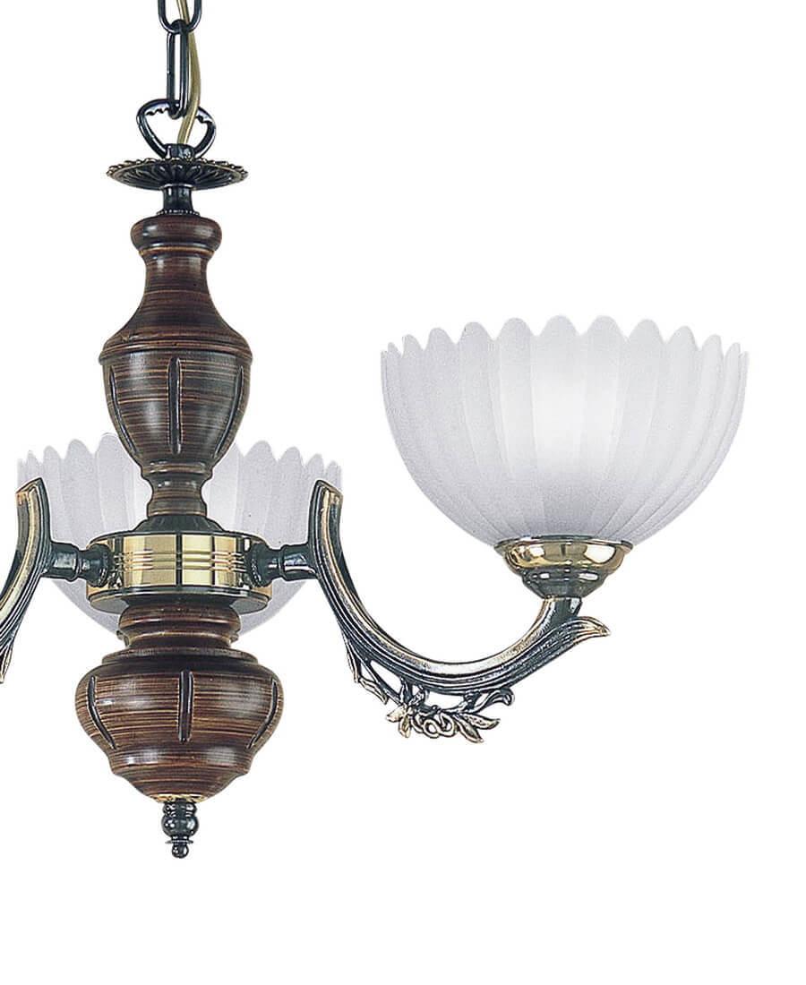 Подвесная люстра Reccagni Angelo L 2805/3 Итальянского производсва – уникальное сочетание высокого качества и удивительных фактур. Этот светильник Классического стиля хорошо подойдет Для спальни и придаст помещению мягкий и приятный свет. Плафоны белые из стекла. Арматура бронза из металла. Кол-во ламп - 3шт. Общая мощность 180W