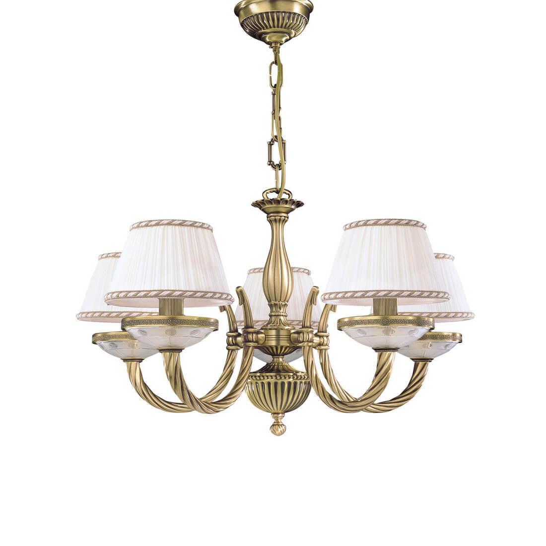 Подвесная люстра Reccagni Angelo L 4660/5 Итальянского производсва – уникальное сочетание высокого качества и удивительных фактур. Этот светильник Классического стиля хорошо подойдет Для гостиной и придаст помещению мягкий и приятный свет. Плафоны белые из ткани. Арматура бронза из металла. Кол-во ламп - 5шт. Общая мощность 300W