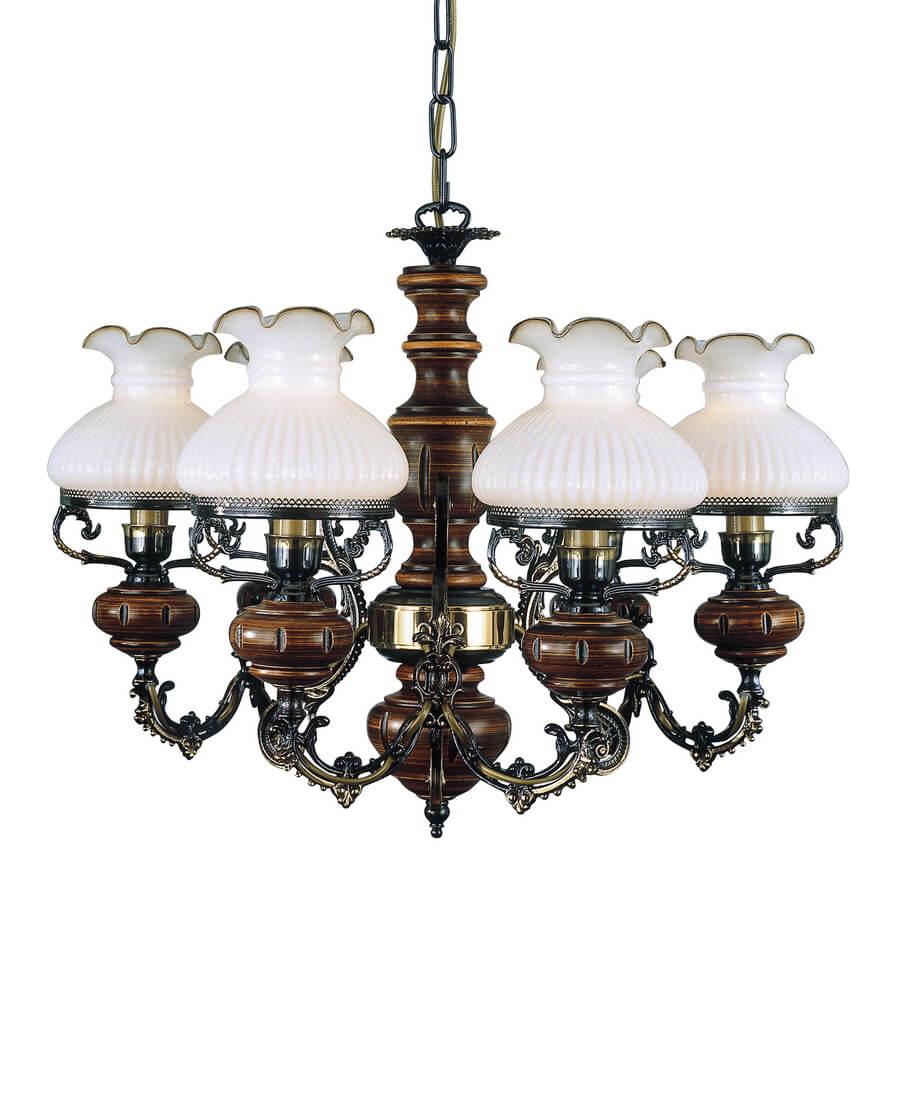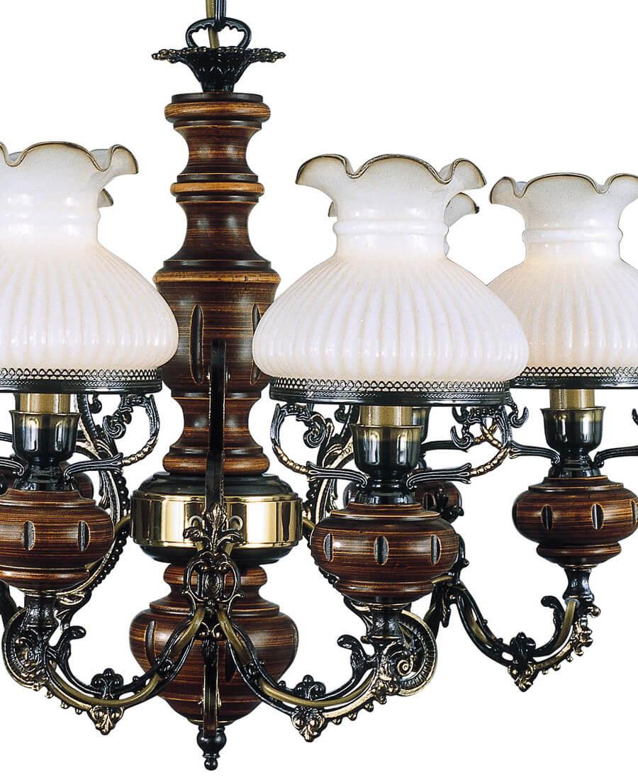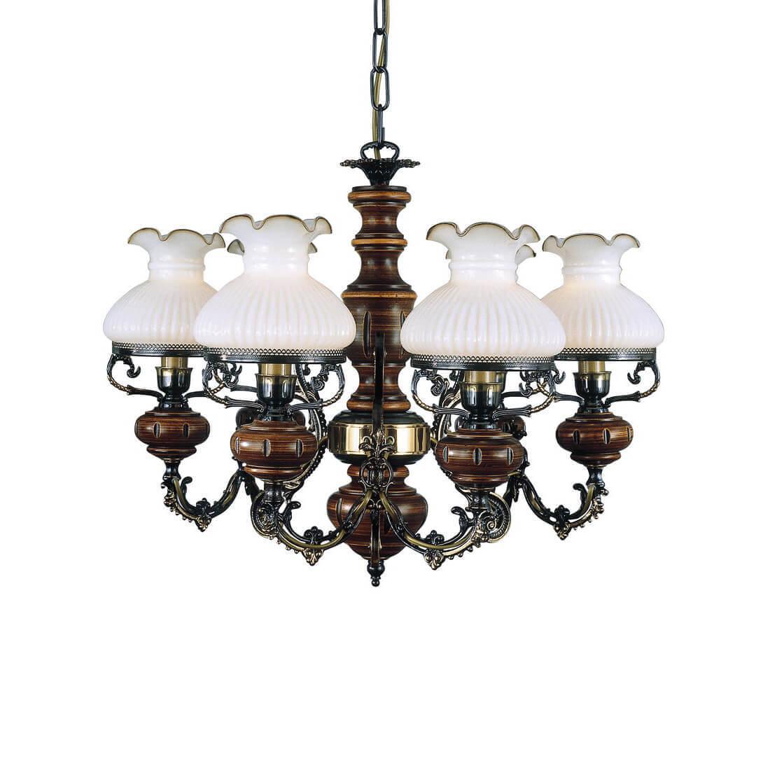 Подвесная люстра Reccagni Angelo L 620/6 Итальянского производсва – отличный выбор для Вас. Этот светильник Классического стиля хорошо подойдет Для гостиной и придаст помещению мягкий и приятный свет. Плафоны белые из стекла. Арматура бронза из металла. Кол-во ламп - 6шт. Общая мощность 360W
